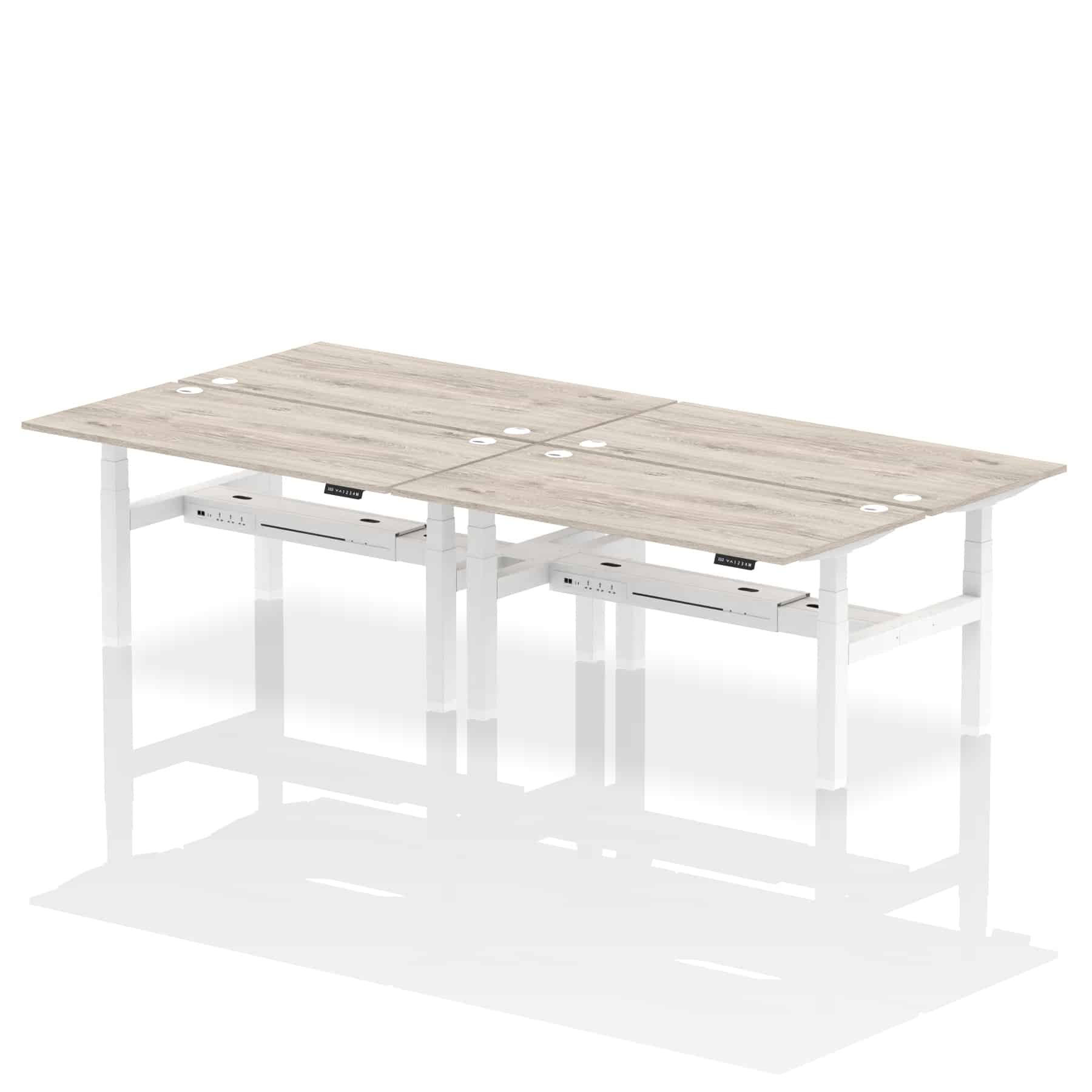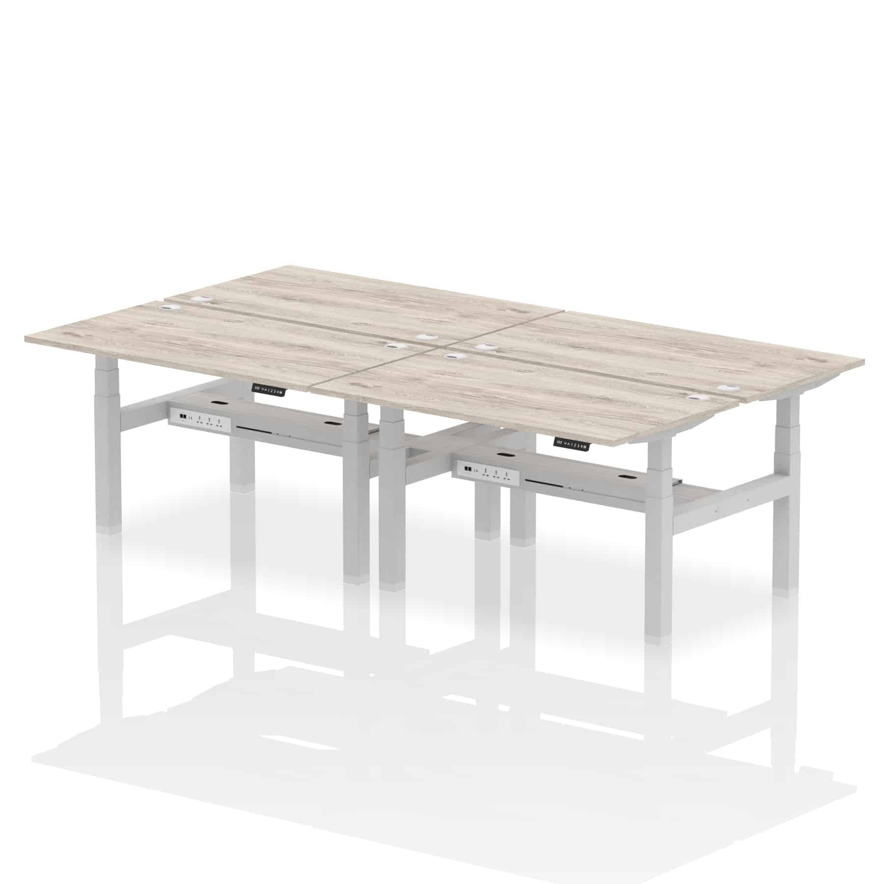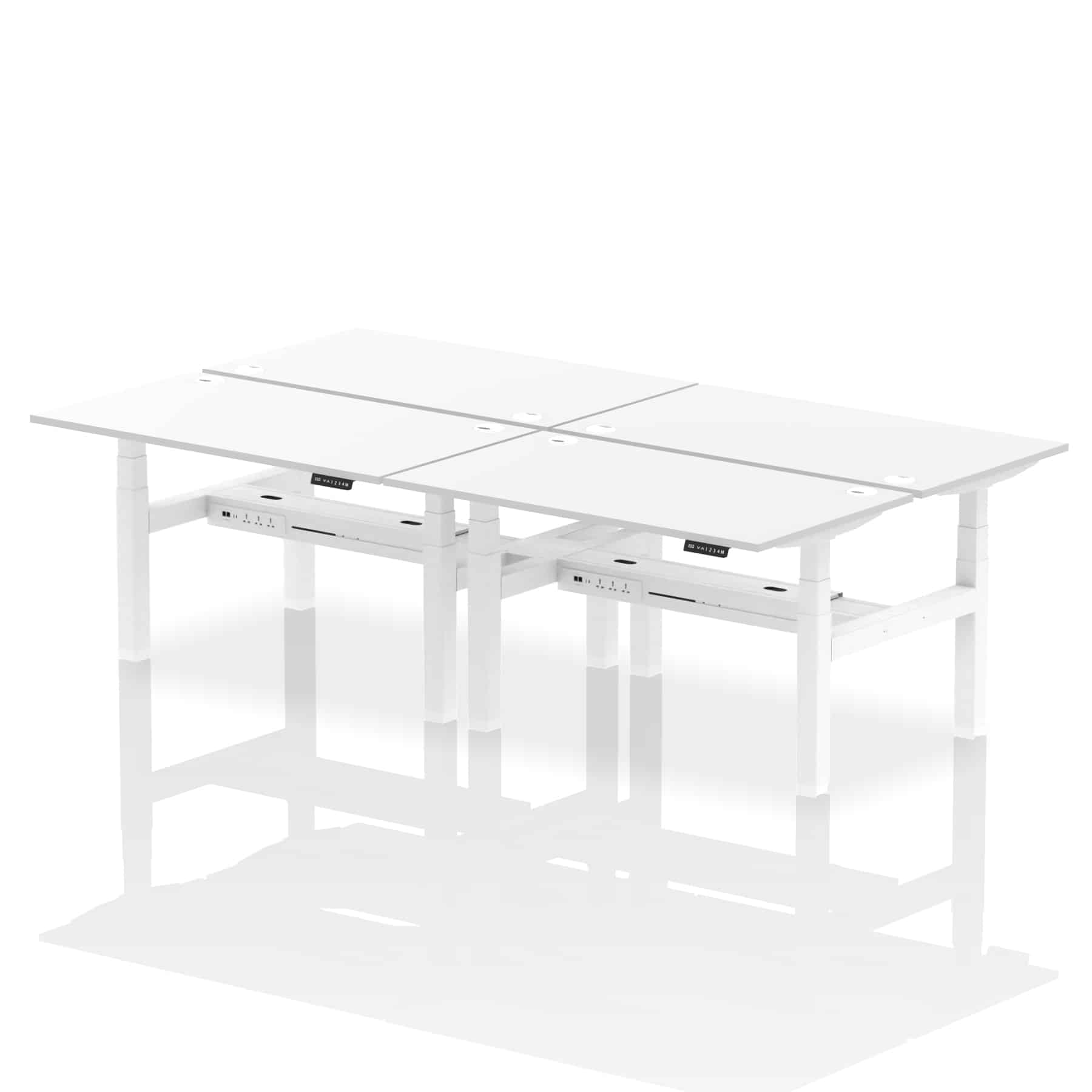 The Air Back-to-Back Height Adjustable Desk, designed for four, is the epitome of efficiency and connectivity. Each desk comes equipped with two Ethernet ports, a USB port, a USB-C port, and three UK plugs, catering to all digital needs. Integrated cable ports ensure a tidy workspace. Adjustable height options offer ergonomic comfort. This desk is the ultimate solution for teams seeking a connected, efficient, and adaptable workspace.