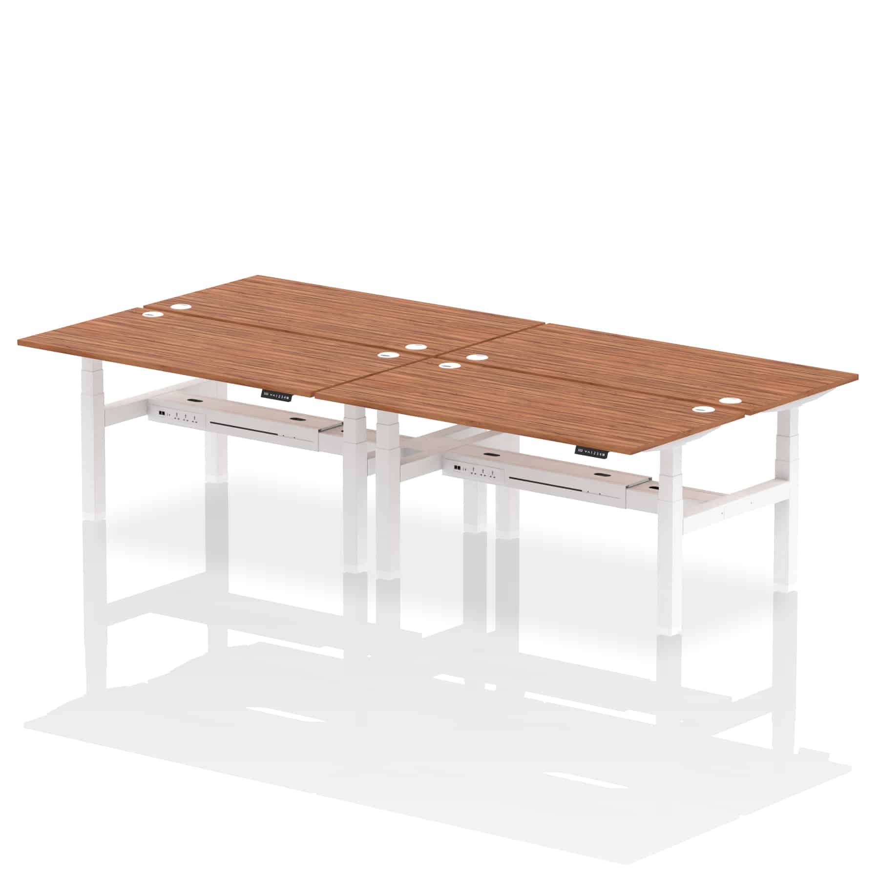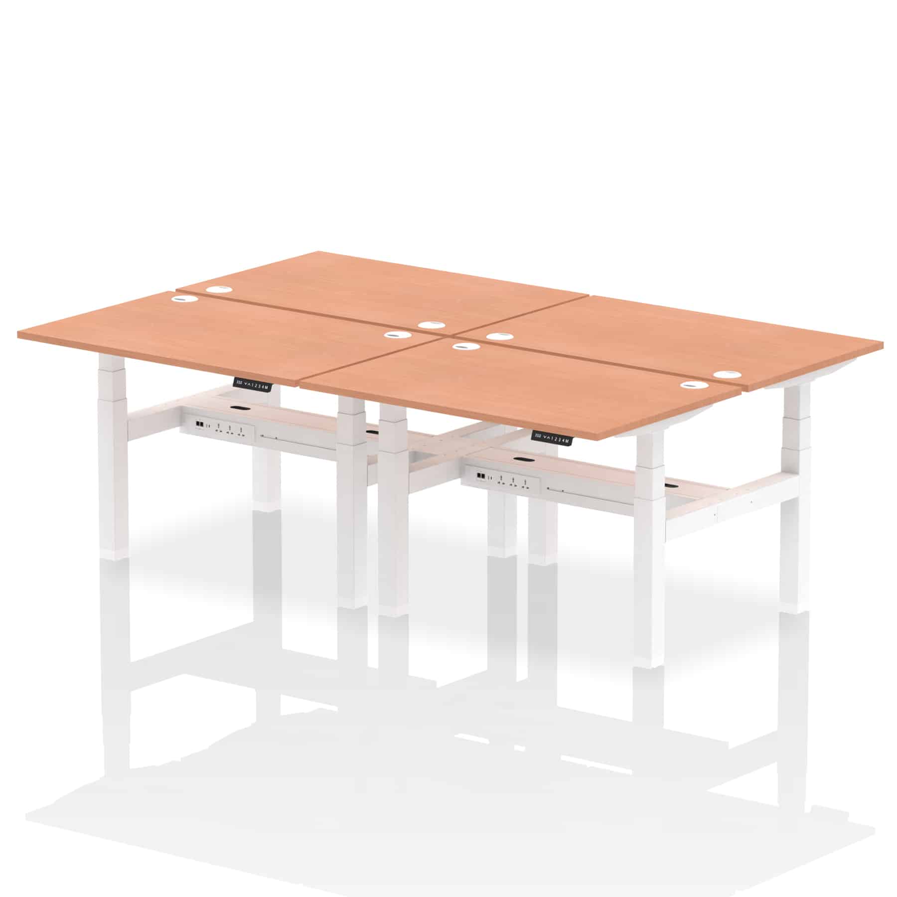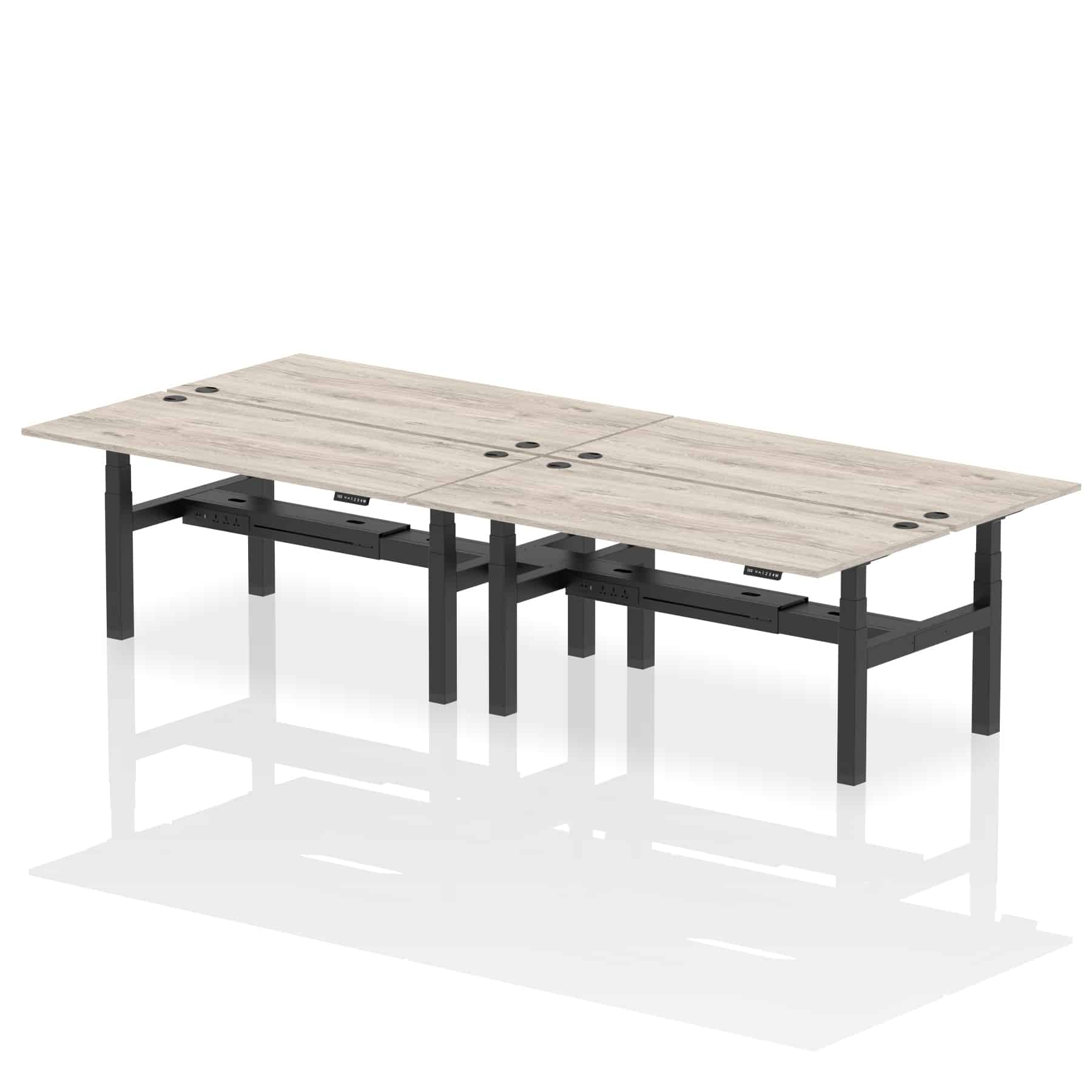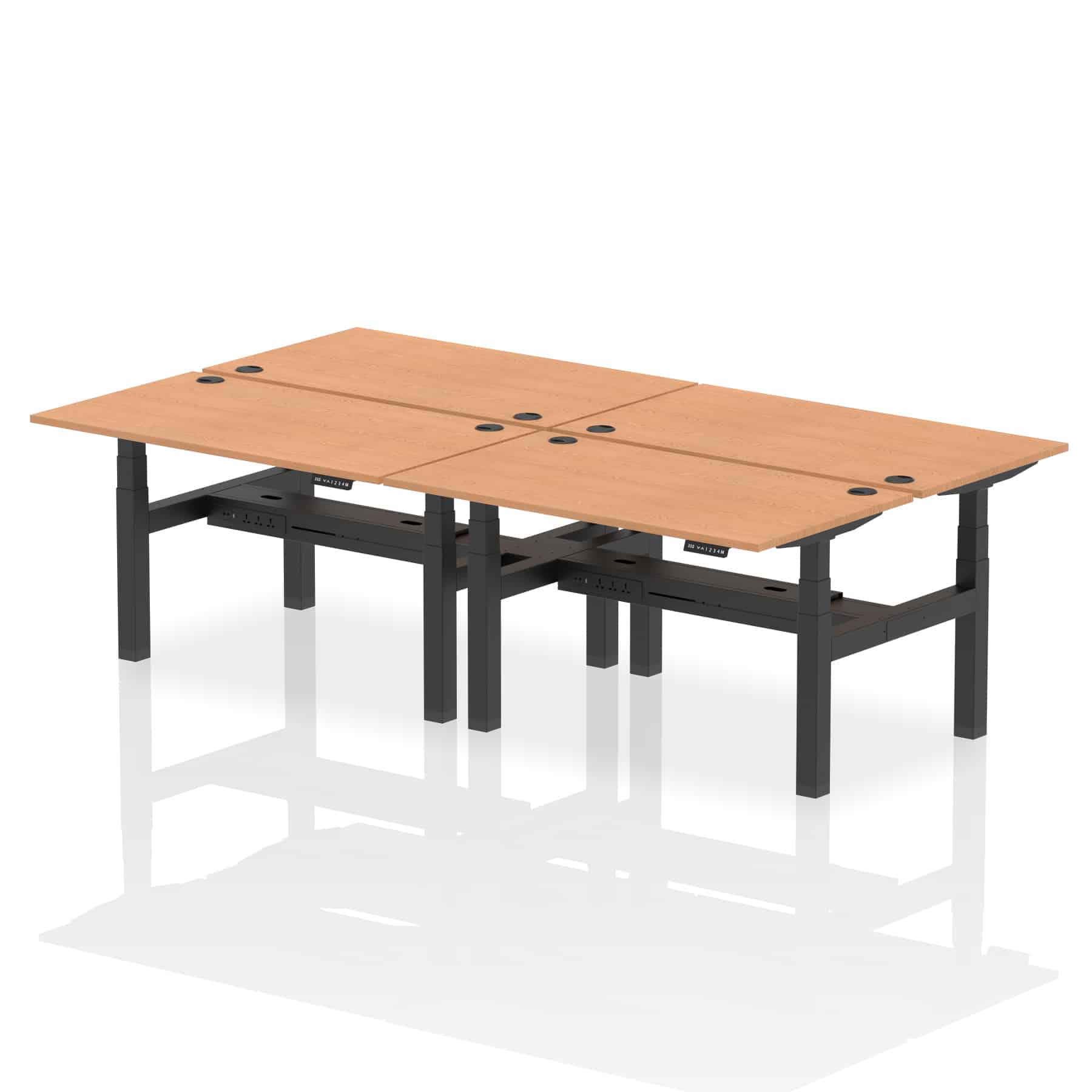 The Air Back-to-Back Height Adjustable Desk, designed for four, is the epitome of efficiency and connectivity. Each desk comes equipped with two Ethernet ports, a USB port, a USB-C port, and three UK plugs, catering to all digital needs. Integrated cable ports ensure a tidy workspace. Adjustable height options offer ergonomic comfort. This desk is the ultimate solution for teams seeking a connected, efficient, and adaptable workspace.