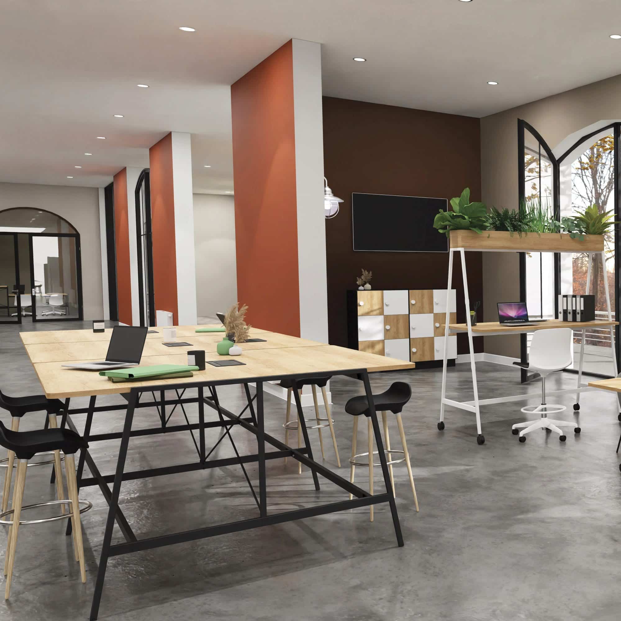 Meeting tables available in 2 formats: rectangular or square (H 75 or 105 cm).