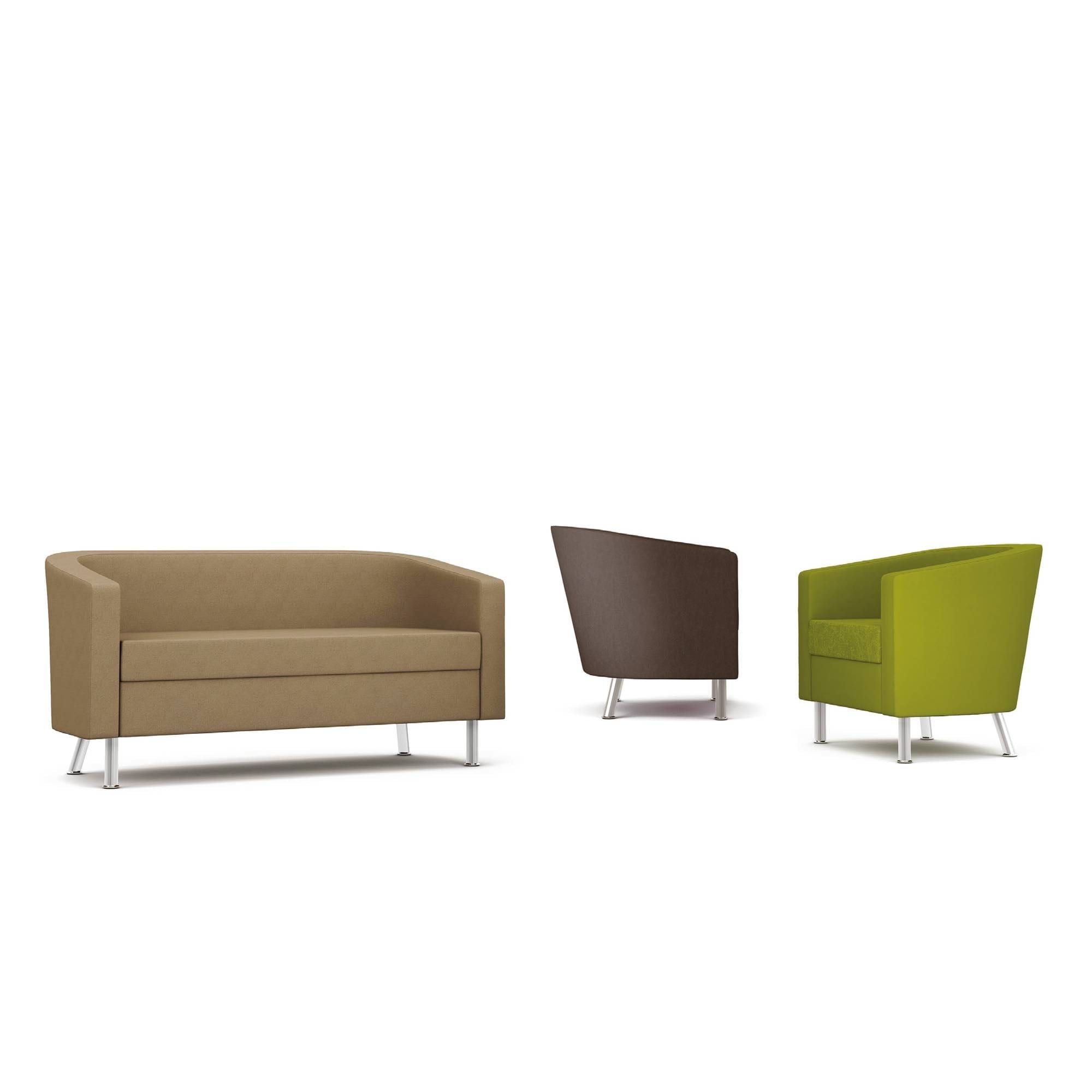 A neat and desirable modern tub chair and sofa, understated but smart in appearance.