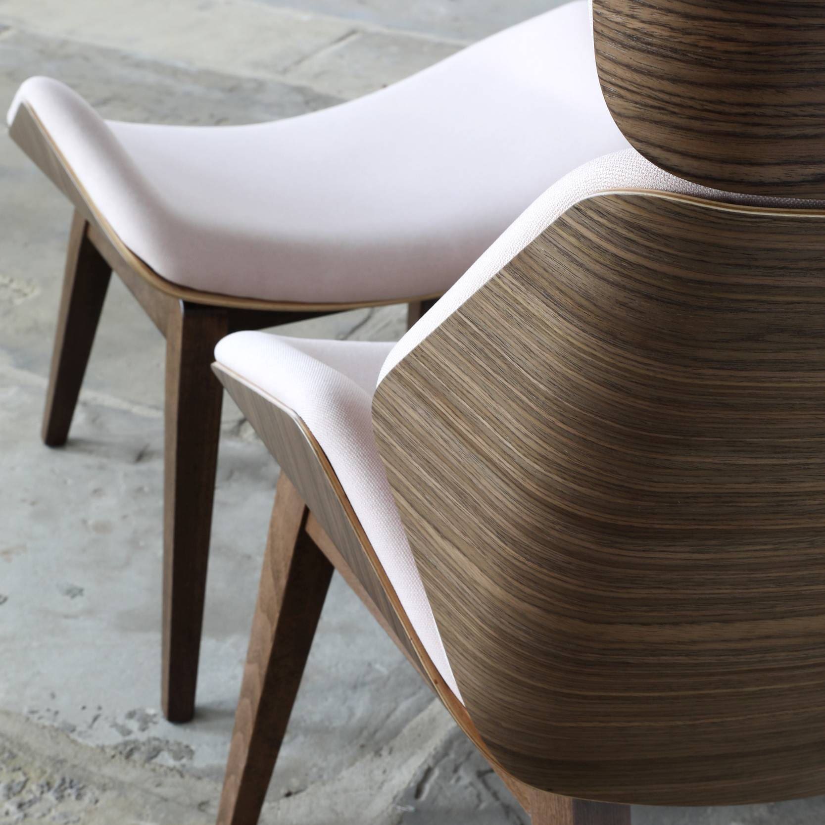 The Cascara family consists of a high back and medium back chair with a choice of white lacquered outer shell, walnut veneered outer shell or a fully upholstered variant, each available on a choice of six different base options, some of which include an optional integrated tilt mechanism, further increasing the chairs functionality and comfort. In addition, the Cascara family includes a bespoke footstool complementing the subtle lines and finish options. Cascara’s distinctive profile is ideally suited to executive lounges, hotels, breakout areas, boardrooms and whole host of other applications.