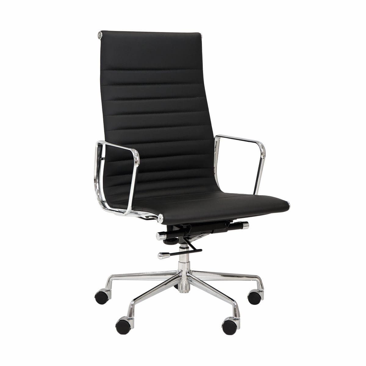 Enna presents a discreetly elegant and classical combination, that is suited to stylish and sophisticated environments. Refined and mature, Enna offers the perfect union of ribbed soft black leather and chrome. The range provides comfort and style in a high or medium back, with the option to select a cantilever base.