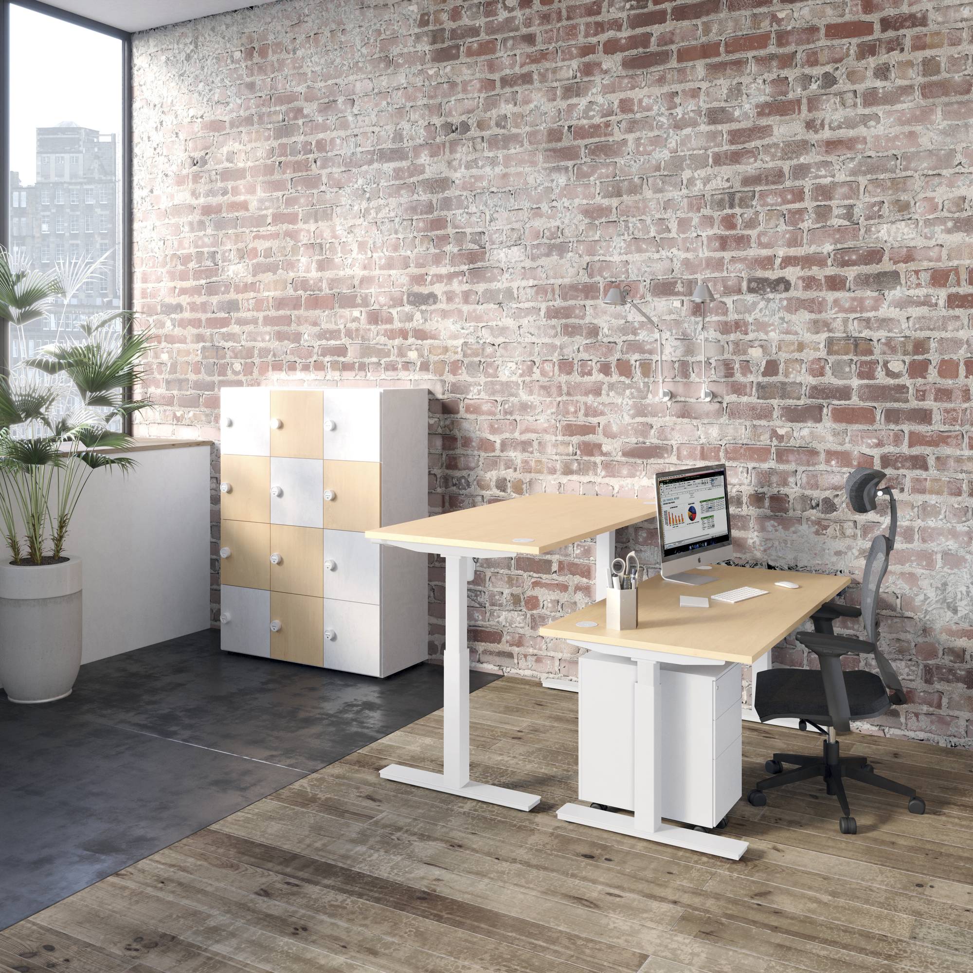 Motorized height adjustment system (1 motor), with adjustment control by “up & down” control box with position memory, with 5v USB A charging socket. 110-240 V power supply box, 3 m power cable. Standby consumption < 0.8 W.