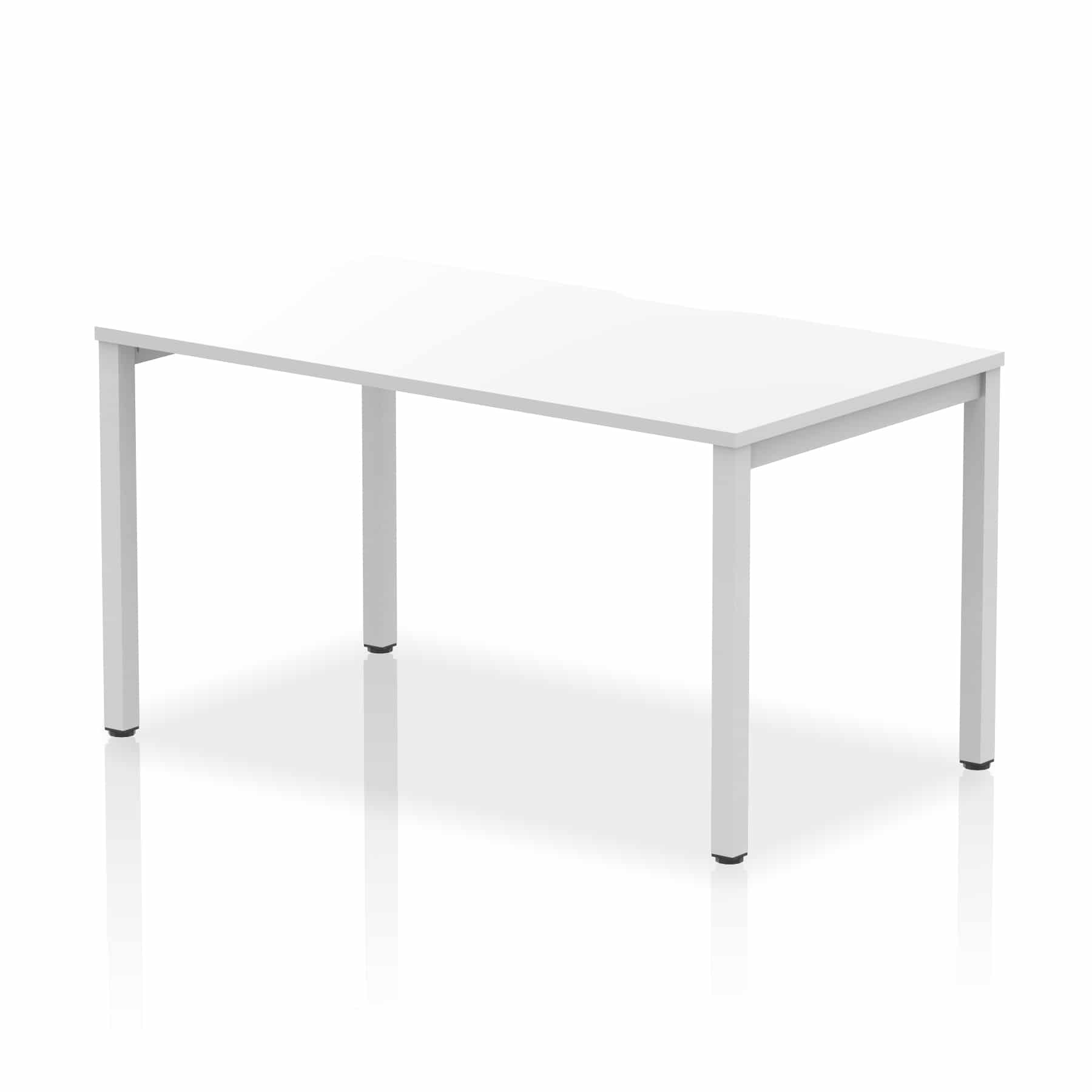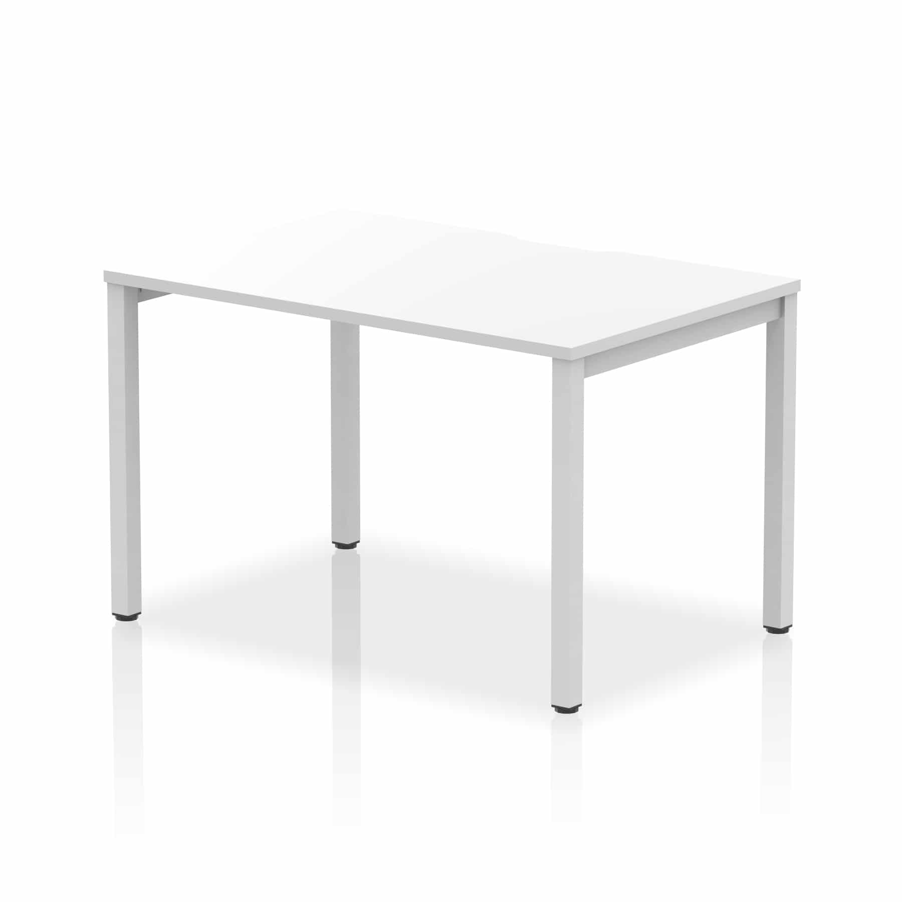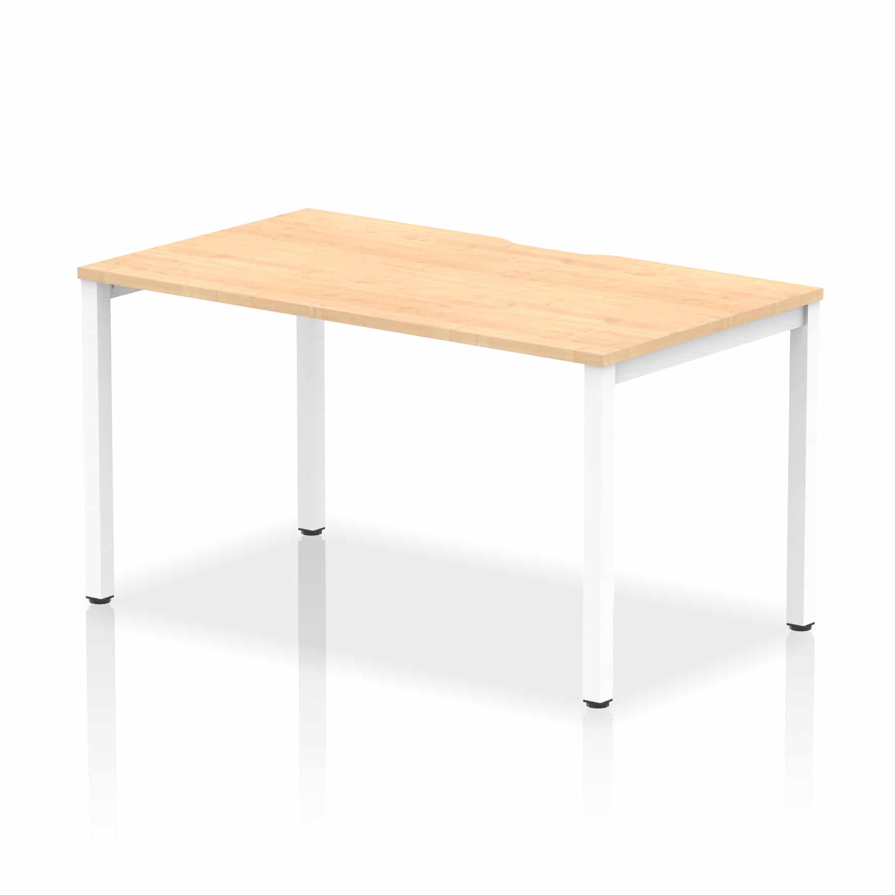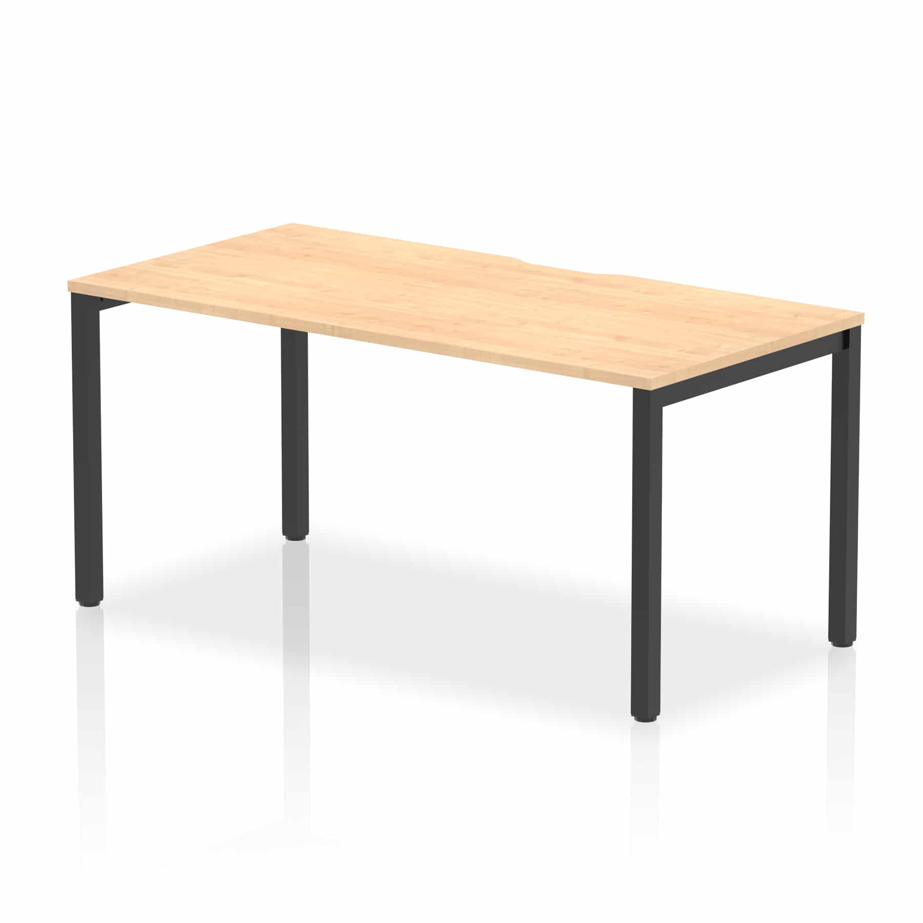 Future proof your desking solutions with the system that can grow, reduce or alter shape easily and without fuss. Seamlessly creating the perfect team working environment, the Evolve Plus bench desking system is stunningly designed and creatively engineered. Bench systems provide a large expanse of workspace with a continuous, uninterrupted surface area.nnCoupled with a wide selection of wood finished sliding tops, Evolve Plus matches our storage and Impulse ranges. This is the desking solution that evolves with your business needs.nnConjoinable frame system allows for easy adaptability • Stylish powder coated goal post leg design • Lockable sliding top mechanism for easy access • Scalloped back edge for easy cable management • 18mm thick tops with 2mm protective edging • Adjustable Feet • Choice of 6 wood finishes and 3 leg colours • Weight Capacity: 135Kg