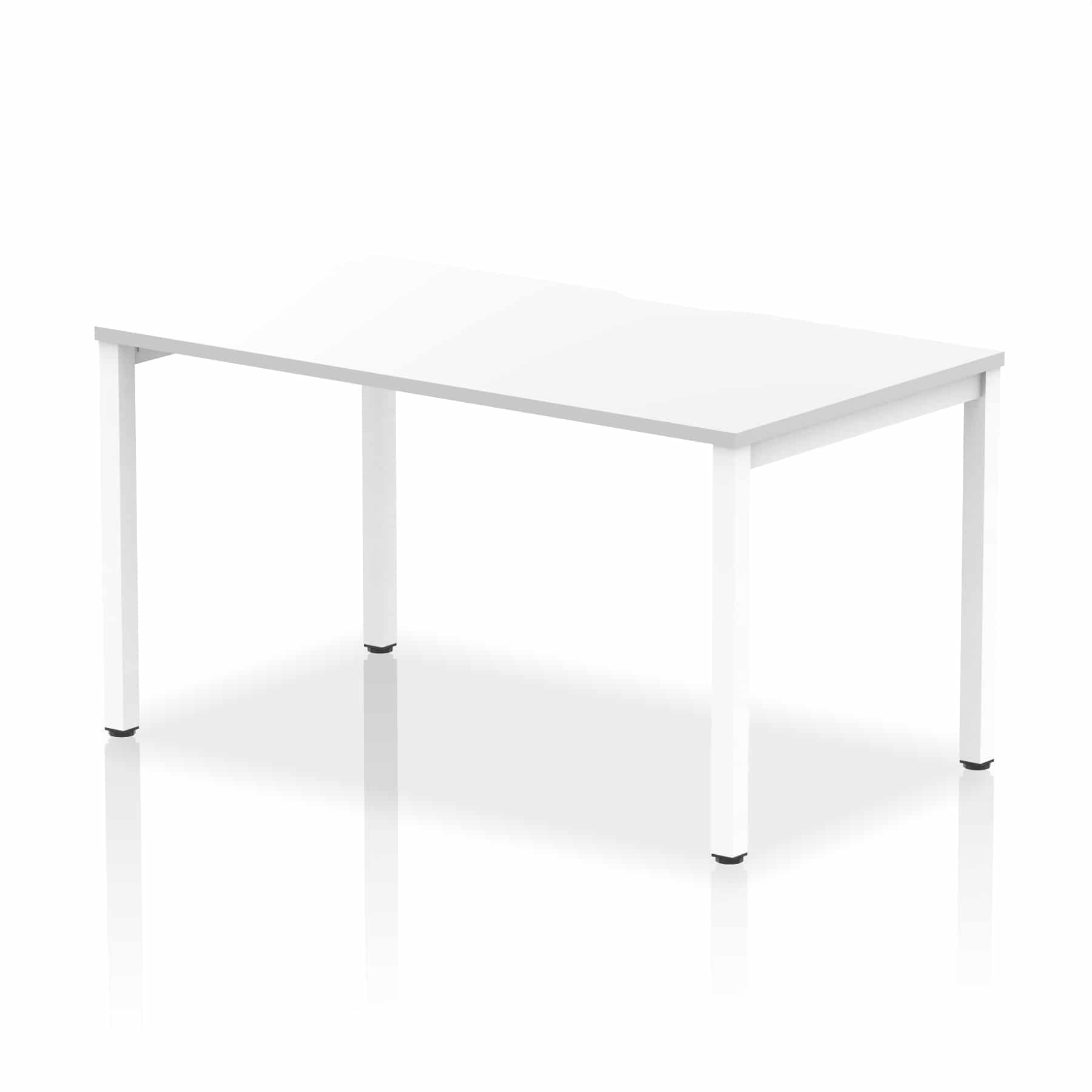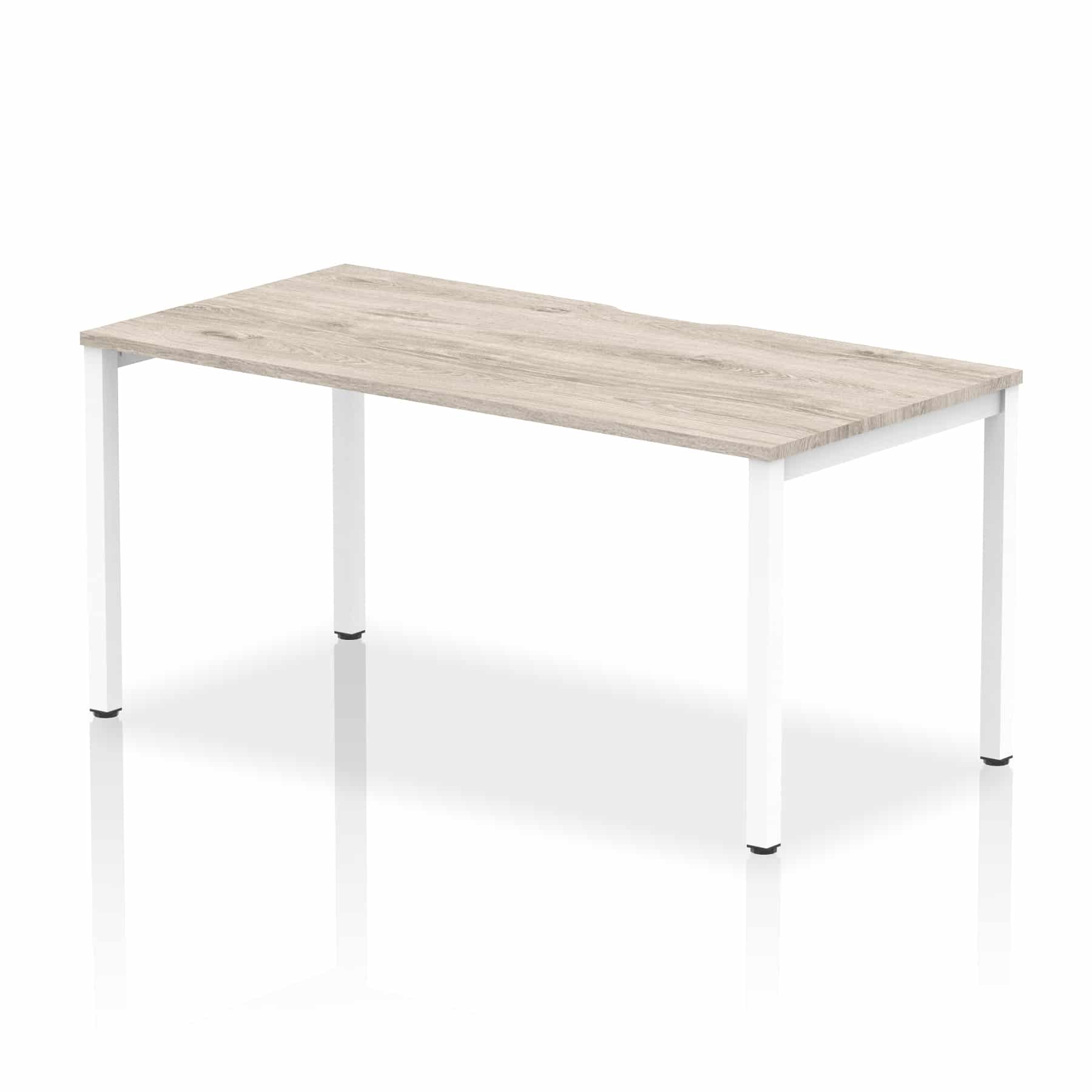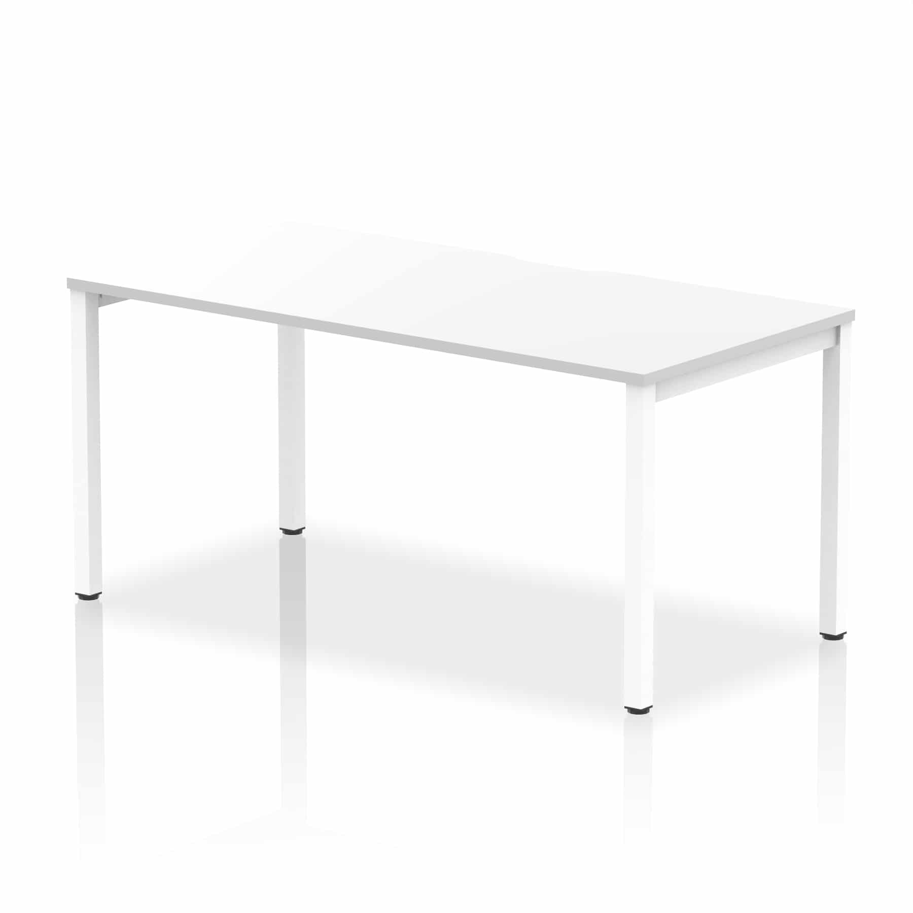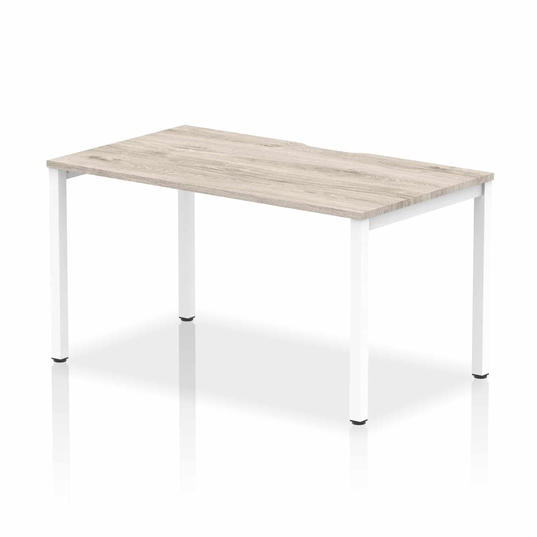 Future proof your desking solutions with the system that can grow, reduce or alter shape easily and without fuss. Seamlessly creating the perfect team working environment, the Evolve Plus bench desking system is stunningly designed and creatively engineered. Bench systems provide a large expanse of workspace with a continuous, uninterrupted surface area.nnCoupled with a wide selection of wood finished sliding tops, Evolve Plus matches our storage and Impulse ranges. This is the desking solution that evolves with your business needs.nnConjoinable frame system allows for easy adaptability • Stylish powder coated goal post leg design • Lockable sliding top mechanism for easy access • Scalloped back edge for easy cable management • 18mm thick tops with 2mm protective edging • Adjustable Feet • Choice of 6 wood finishes and 3 leg colours • Weight Capacity: 135Kg