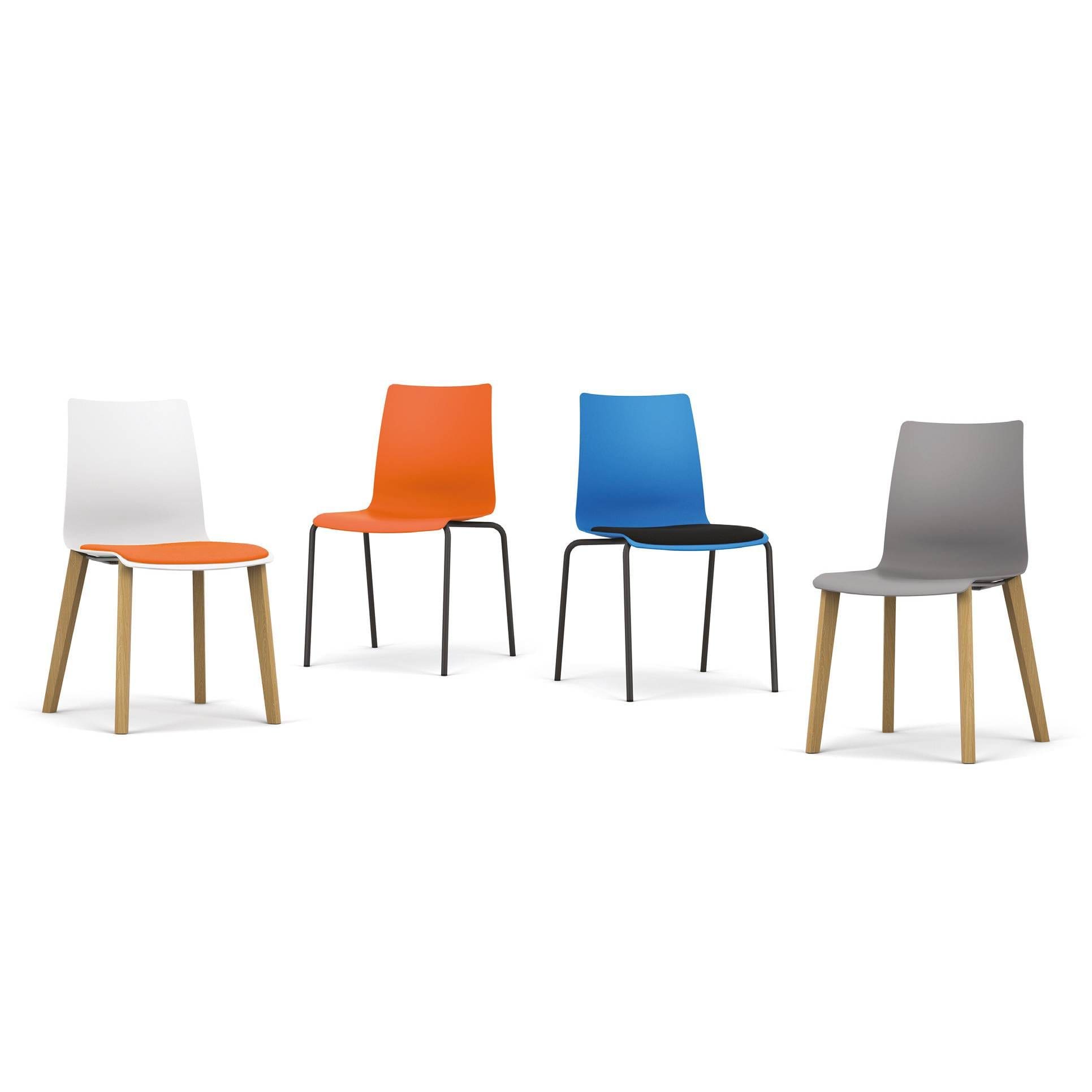 Polypropylene Shell in 8 colours 4-Legged Metal Black Frame 4-Legged Natural Wooden Frame