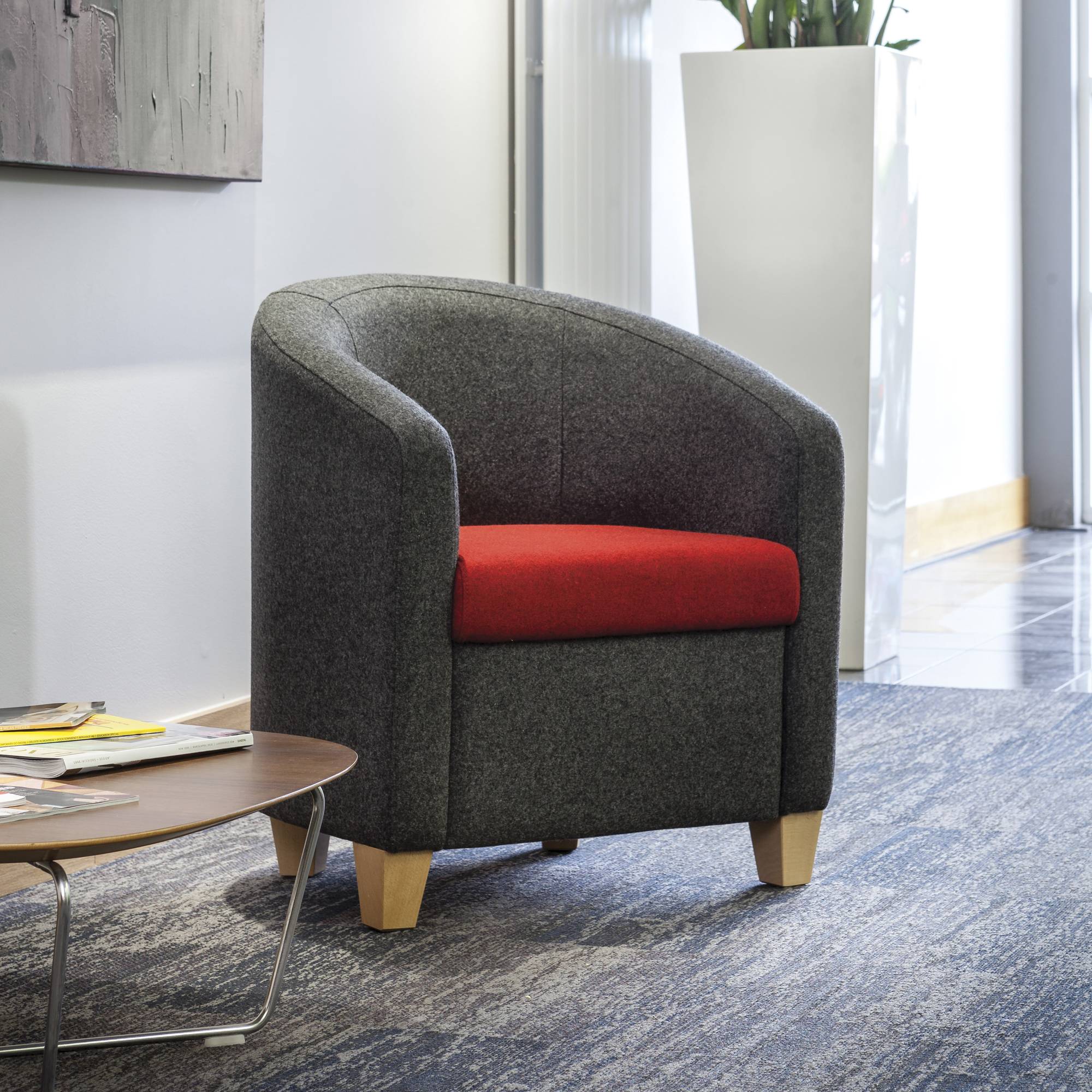 Flite is a fully upholstered, compact rounded tub chair with a classic chair design to suit all workspace.