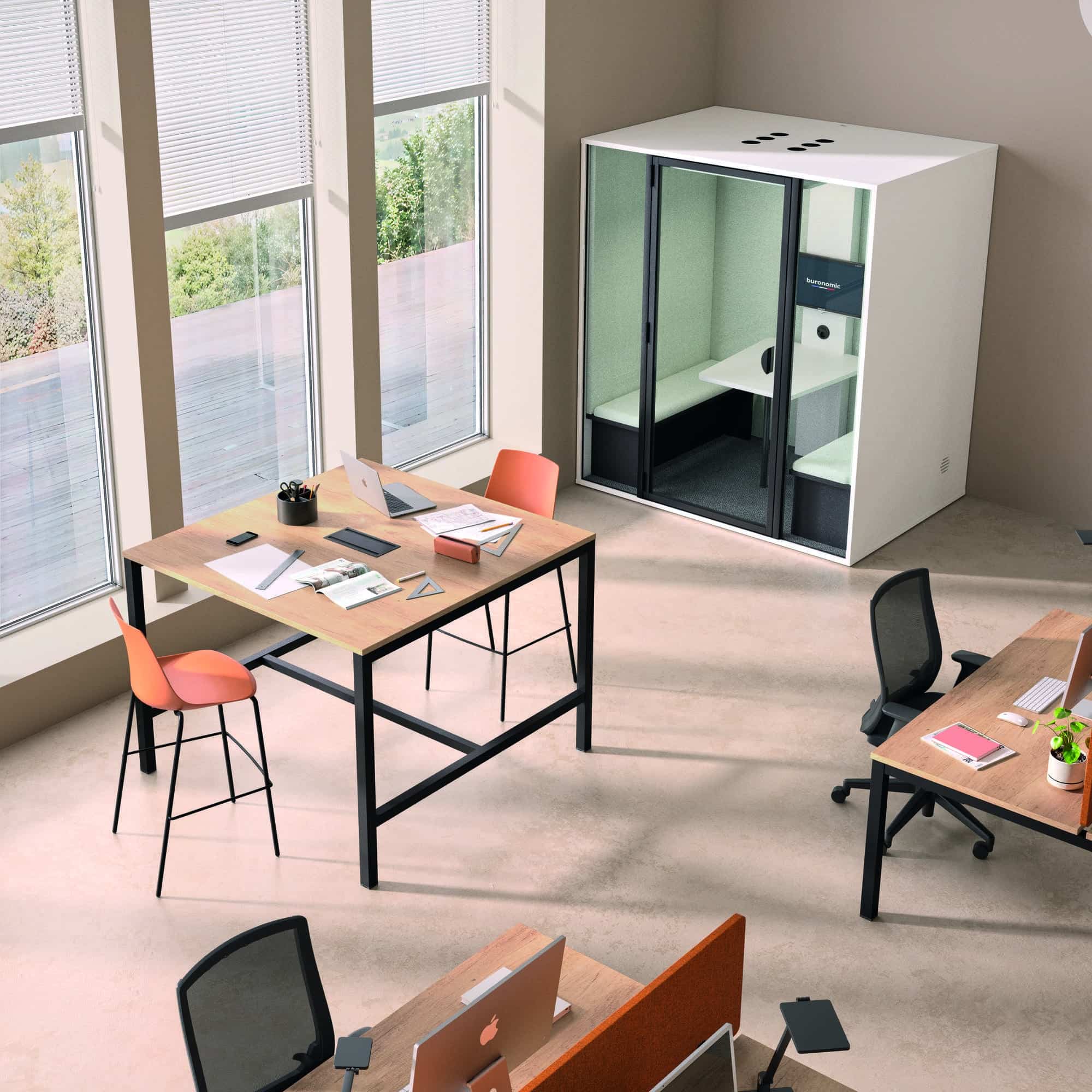 Perfectly adapted to new ways of organizing workspaces, Astrolite Haute allow employees to mix quick meetings, coworking or relaxation breaks. Standing or sitting on high chairs, employees will appreciate the comfort, versatility and robustness of Astrolite Haute , available with or without electrification, with or without casters, depending on the version.