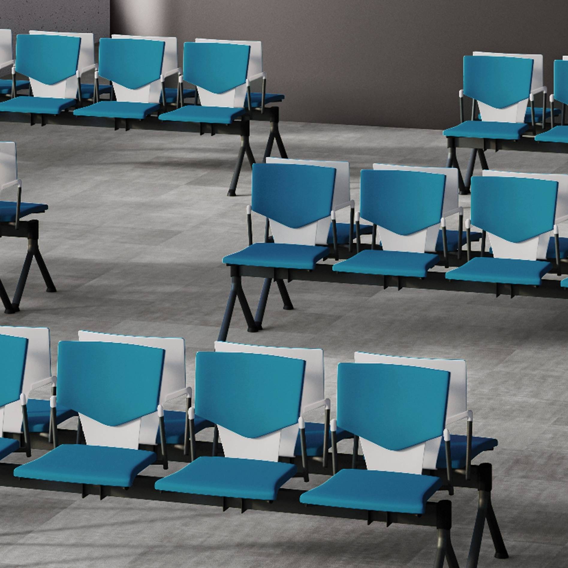 2; 3; 4 & 5-Seater units with plastic shells and optional seat and back pads – can be floor fixed or free standing – switch a seat for a table – add arms if needed.