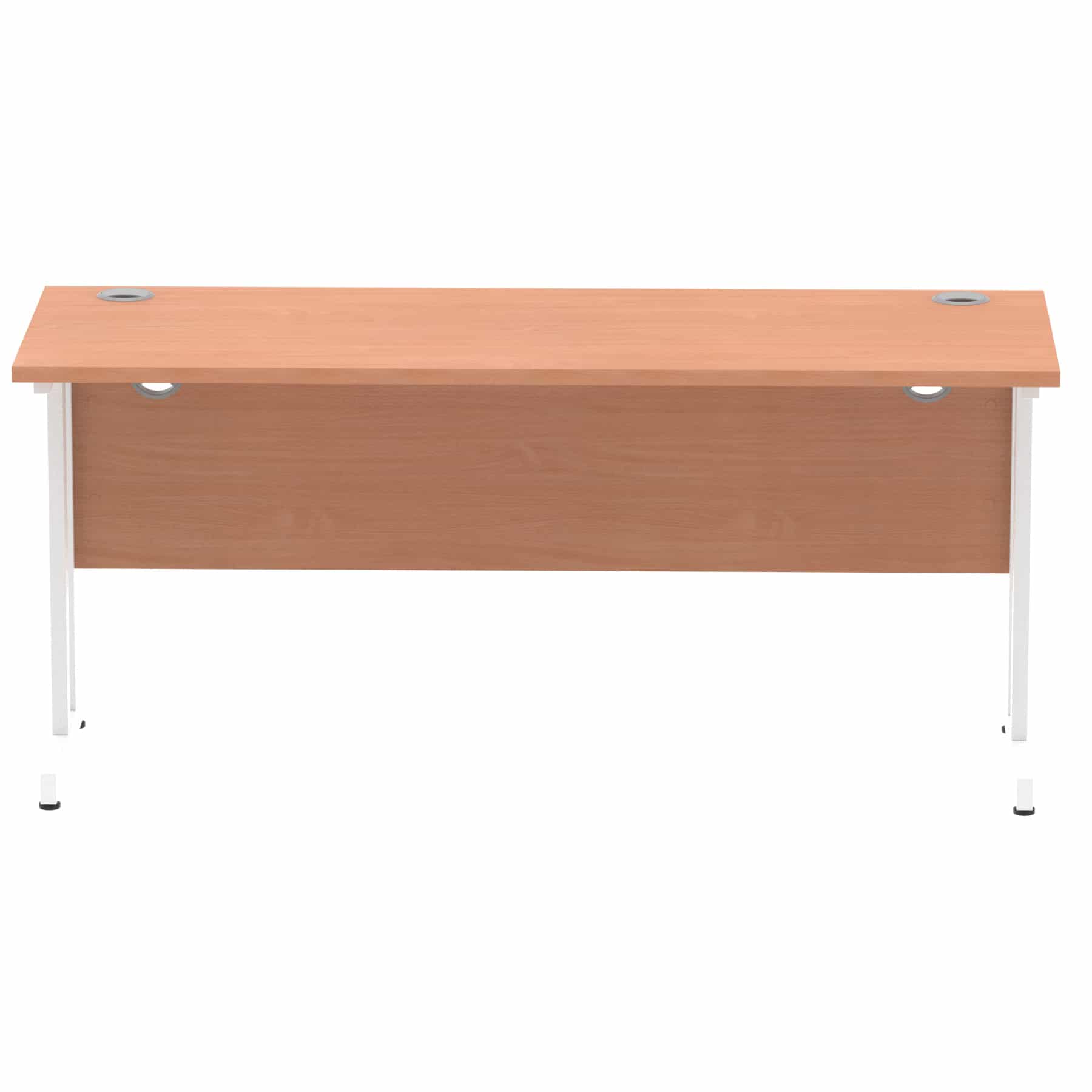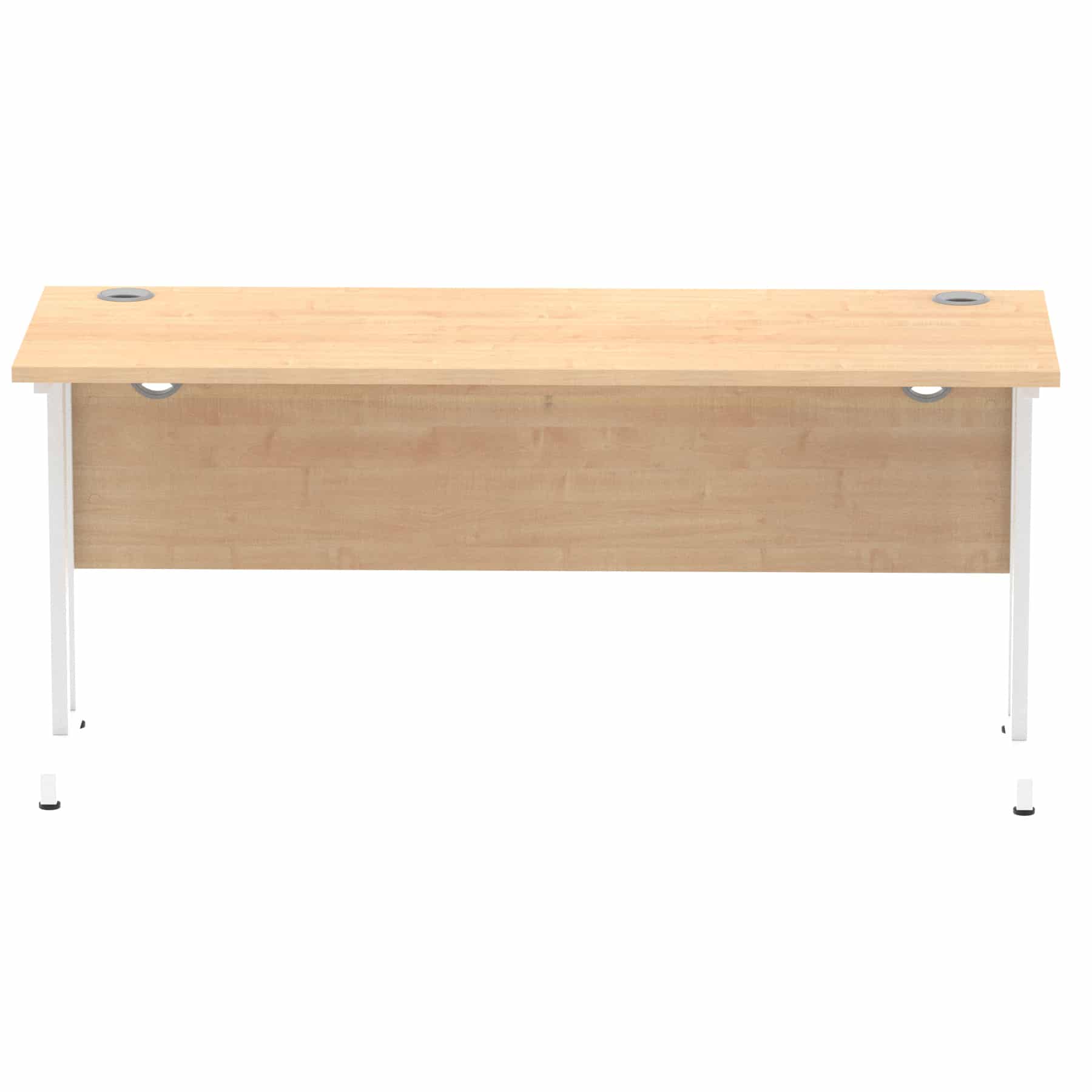 Impulse represents the best value contract office desking and storage available today. Created by specialist designers with a focus on all office furniture needs the products provide refinement on budget. The comprehensive range is fully guaranteed and quality assured.nnImpulse contract desk | 25mm tops | Heat resistant melamine finish | 18mm modesty panels | 2mm protective abs edging | Silver coated double strut legs | 2 cable ports | Height adjustable feet | Steel to steel fixings | 2 modesty panels slots Deep set modesty panel (5″) allows for compatibility of most screen clamp fittings | Weight Capacity 135Kg