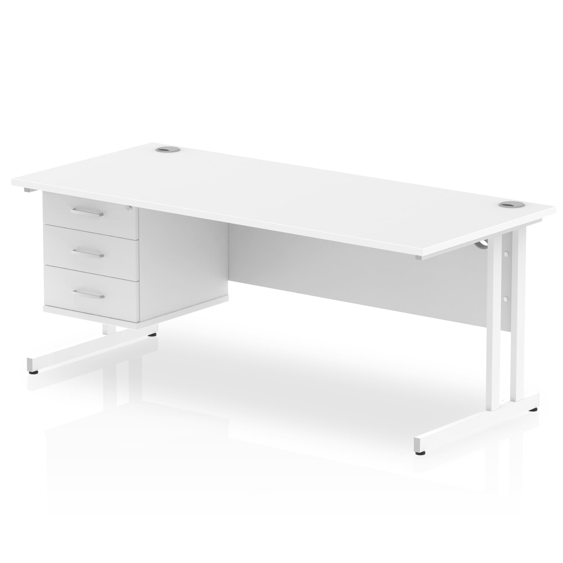Impulse represents the best value contract office desking and storage available today. Created by specialist designers with a focus on all office furniture needs the products provide refinement on budget. The comprehensive range is fully guaranteed and quality assured.nn• Impulse contract 1800 wide desk • 25mm tops • Heat resistant Beech melamine finish • 18mm modesty panels • 2mm protective abs edging • White coated double strut legs • 2 cable ports • Height adjustable feet • Steel to steel fixings • 2 modesty panels slots • Deep set modesty panel (5”) allows for compatibility of most screen clamp fittings • Fixed pedestal