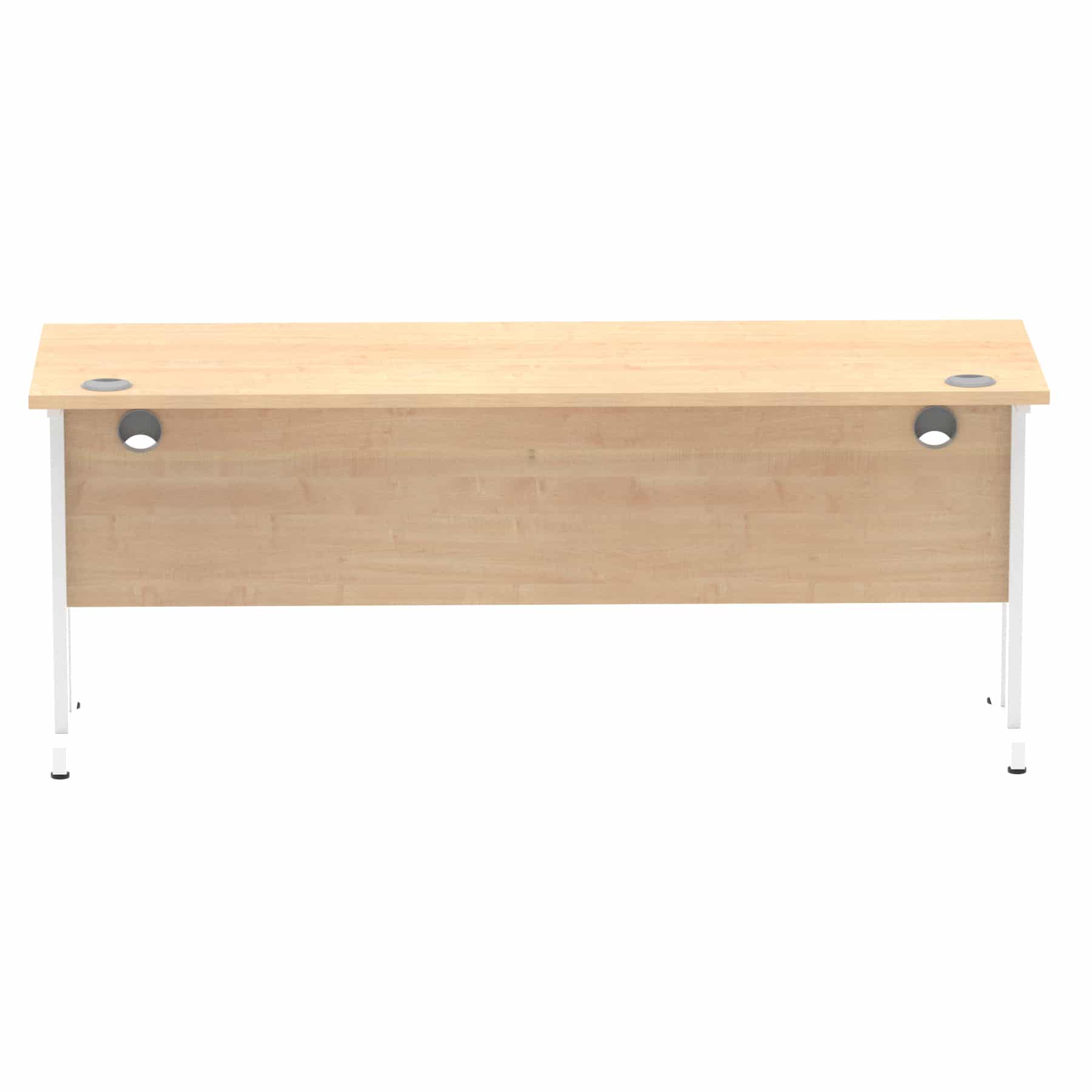 Impulse represents the best value contract office desking and storage available today. Created by specialist designers with a focus on all office furniture needs the products provide refinement on budget. The comprehensive range is fully guaranteed and quality assured.nnImpulse contract desk | 25mm tops | Heat resistant melamine finish | 18mm modesty panels | 2mm protective abs edging | Silver coated double strut legs | 2 cable ports | Height adjustable feet | Steel to steel fixings | 2 modesty panels slots Deep set modesty panel (5″) allows for compatibility of most screen clamp fittings | Weight Capacity 135Kg