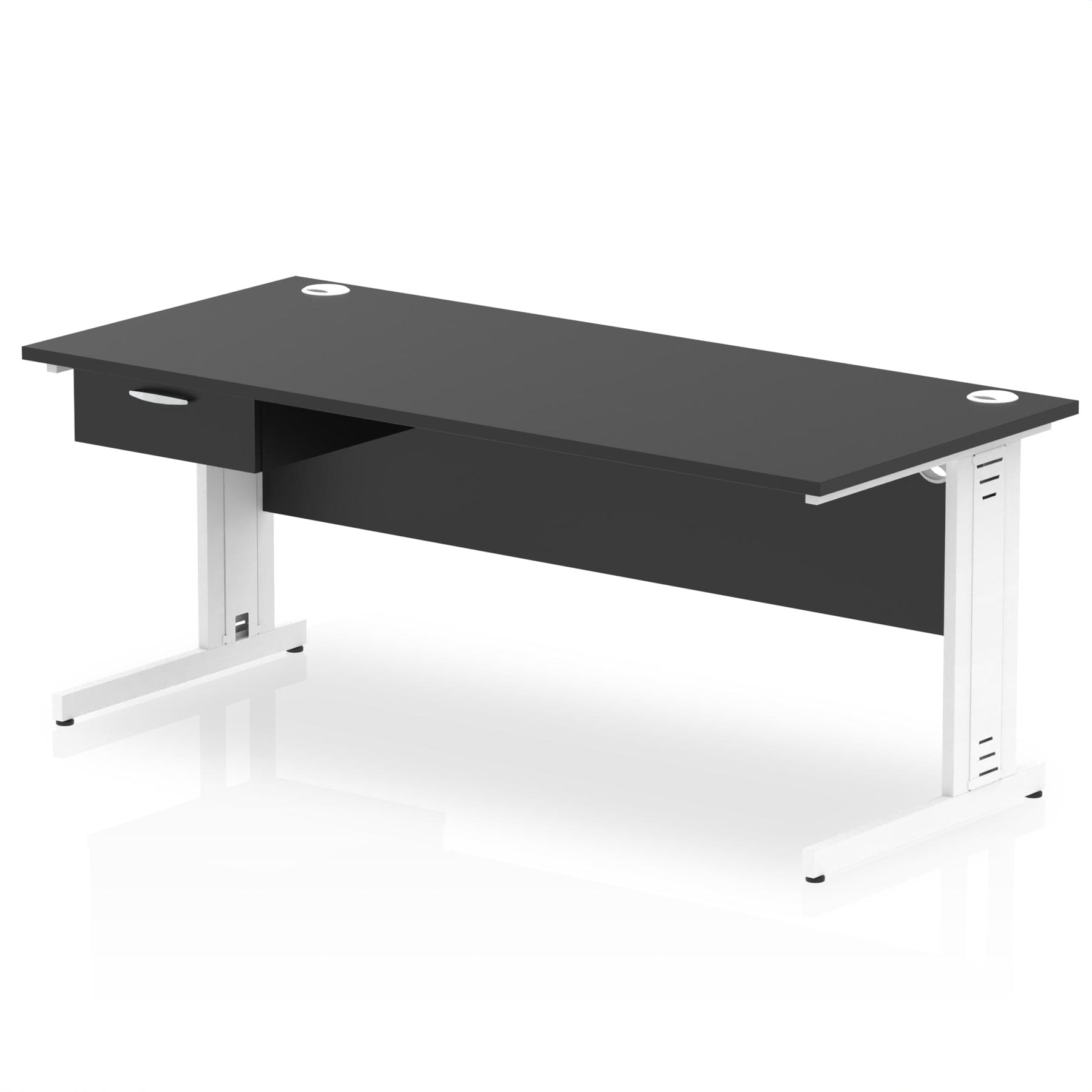 Impulse Cable Managed Straight Desk White Frame With Single One Drawer Fixed Pedestal