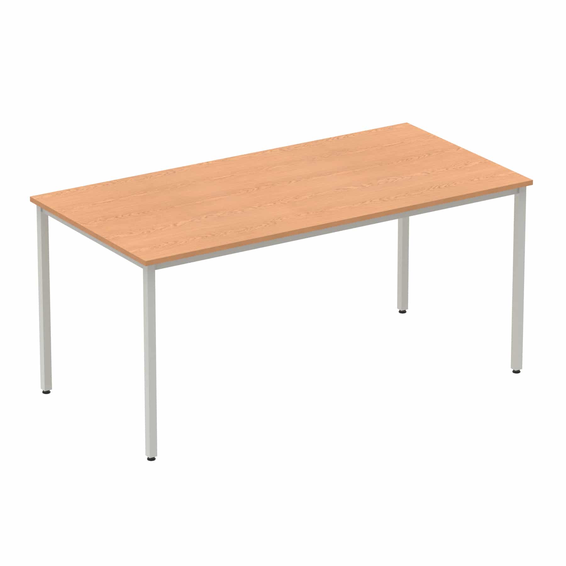 Impulse freestanding meeting table • Classic rectangular shape • Provides excellent team working environment • 18mm thick top • Attractive silver coated box frame leg • 2mm abs protective edging • Heat resistant beech melamine finish • Weight Capacity: 100Kg