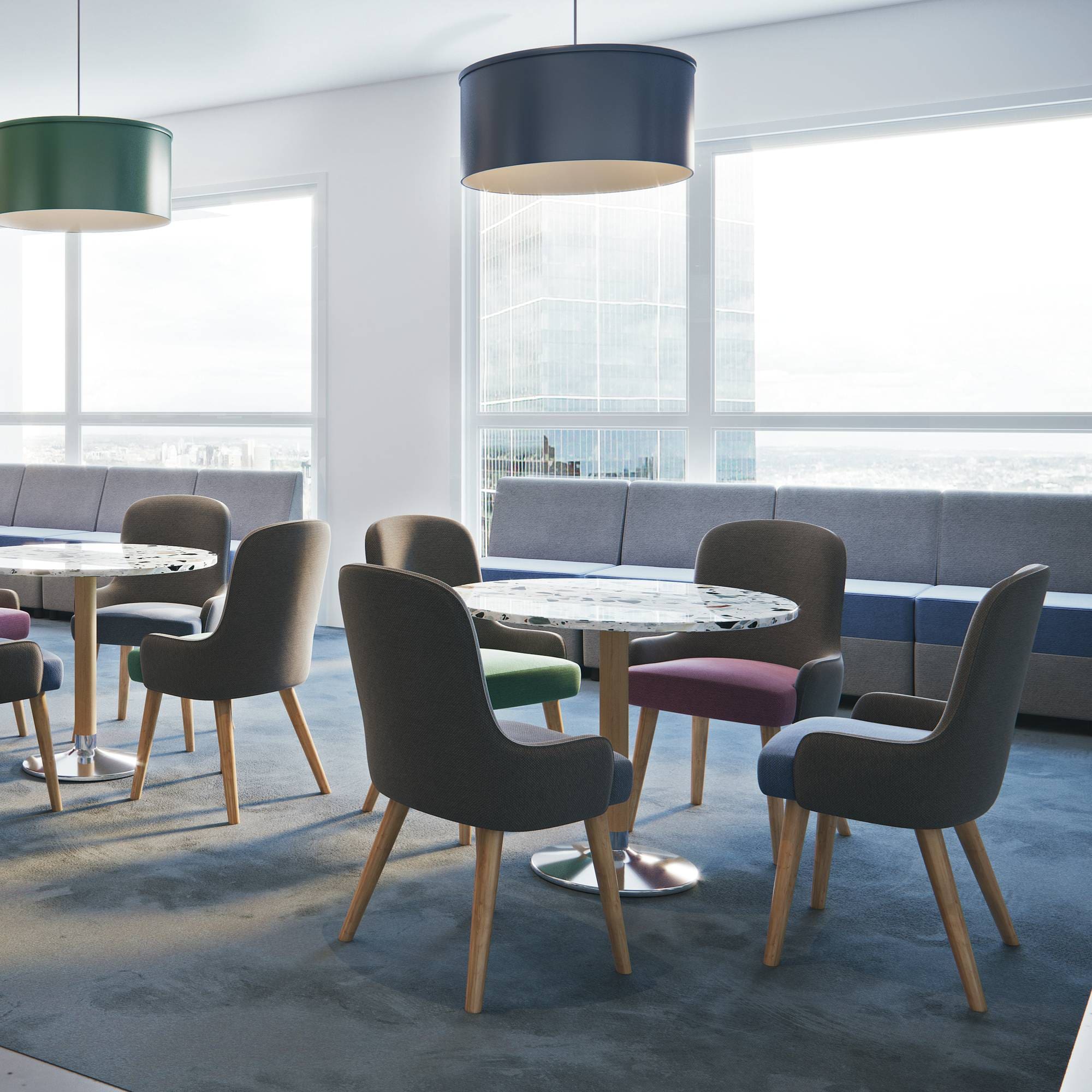 Knik is a stylish, high-back lounge and dining chair. Comfortable and strong with a choice of natural or black wooden legs.