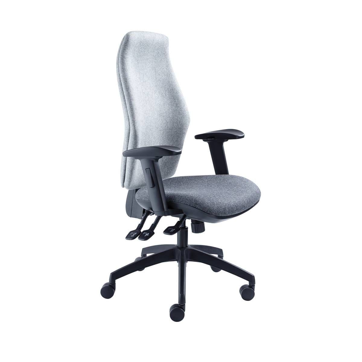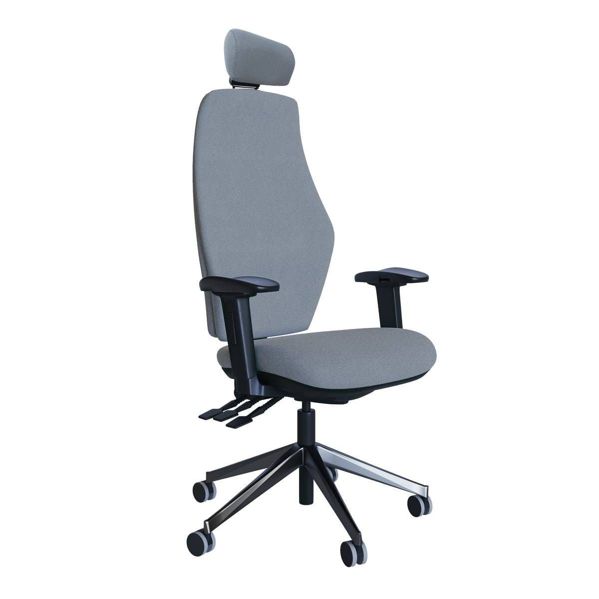Modern, versatile, and supportive. The Kona is an extra-high back ergonomically designed task chair giving maximum support. Independently adjustable seat tilt and back rake with an option of a fully adjustable head/neck rest. Multi-functional armrests and labelled levers for ease of use. Optional extras of memory foam seat pad and inflatable lumbar, thorax, and seat cushions allow personalisation of your new task chair.