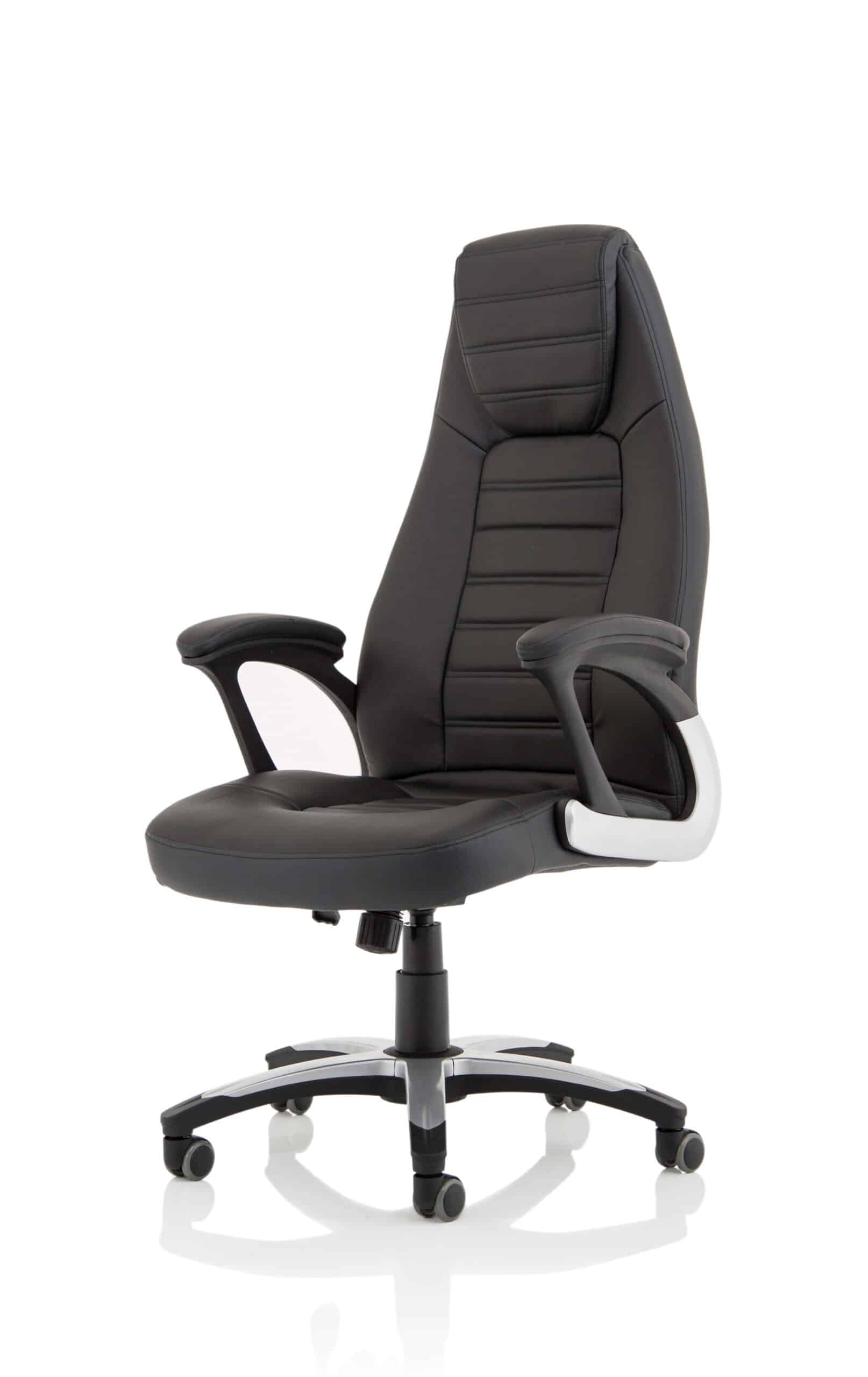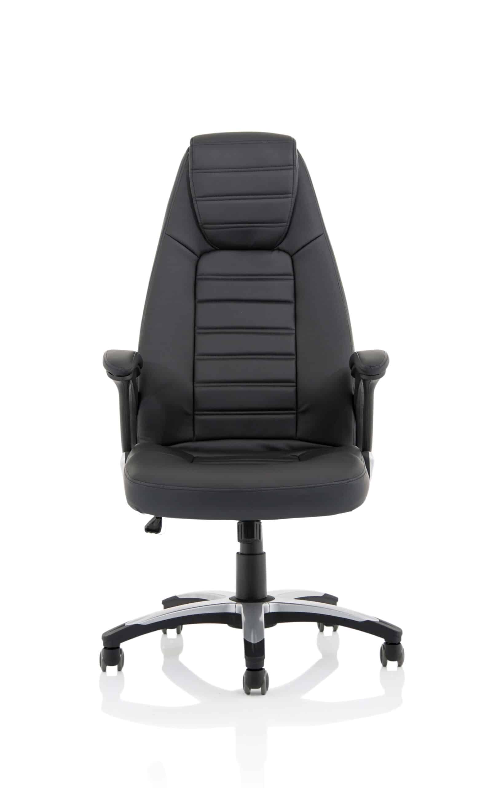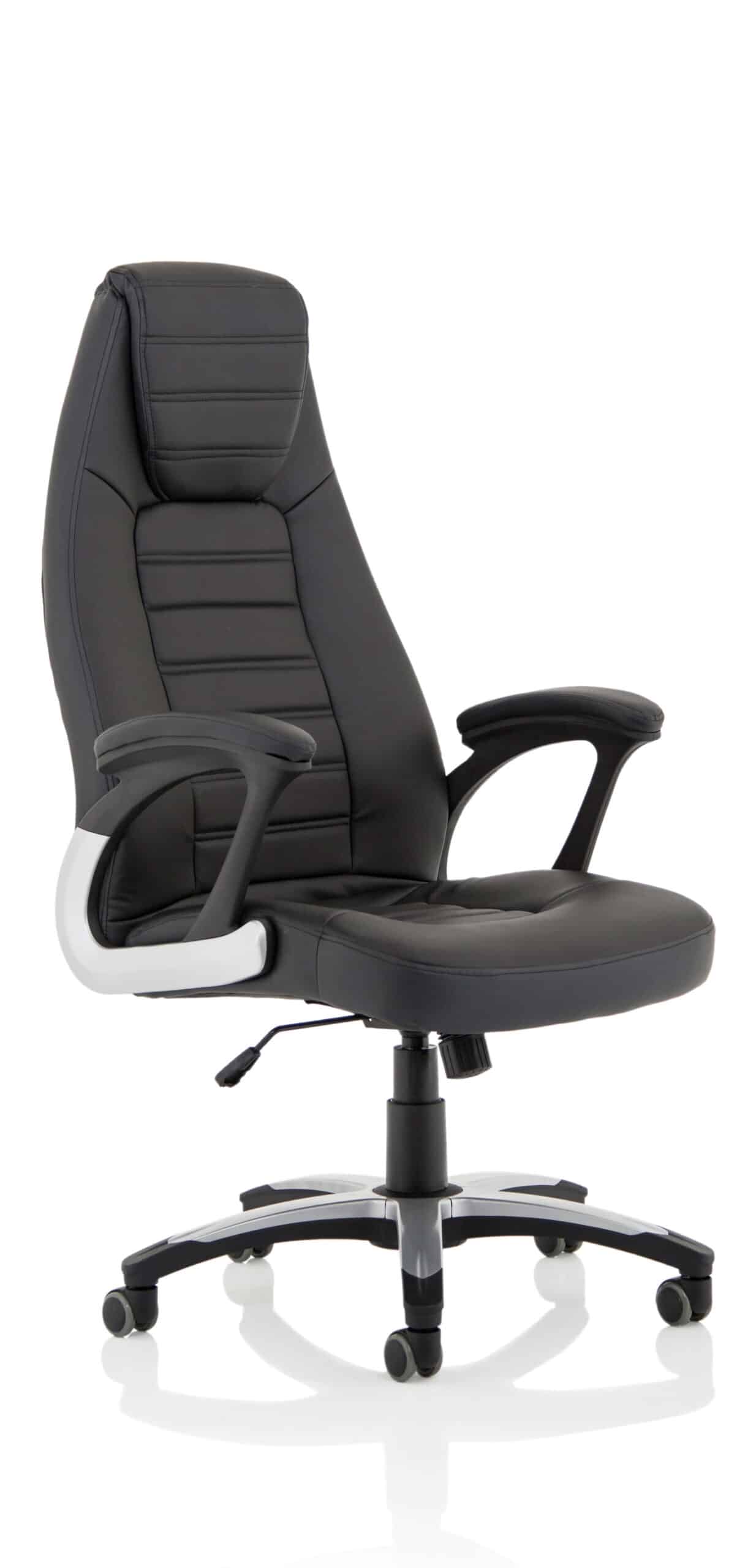 This ingeniously designed chair with detail stitching, integral lumbar support, auto-tilting action and fully upholstered arms is everything the modern executive craves from their seating solution. A chair for every user and every location it has upholstered pads for extra comfort and stunning good looks for the modern office. This highly functional exec chair is finished in wipe clean leather look upholstery that is soft to touch.