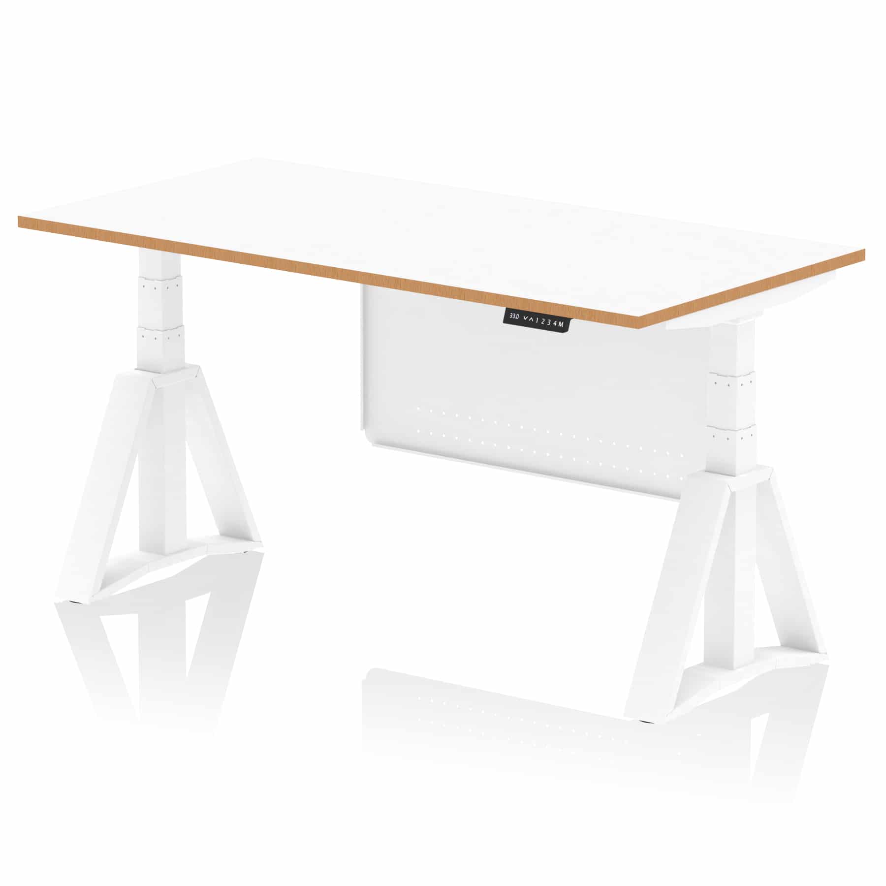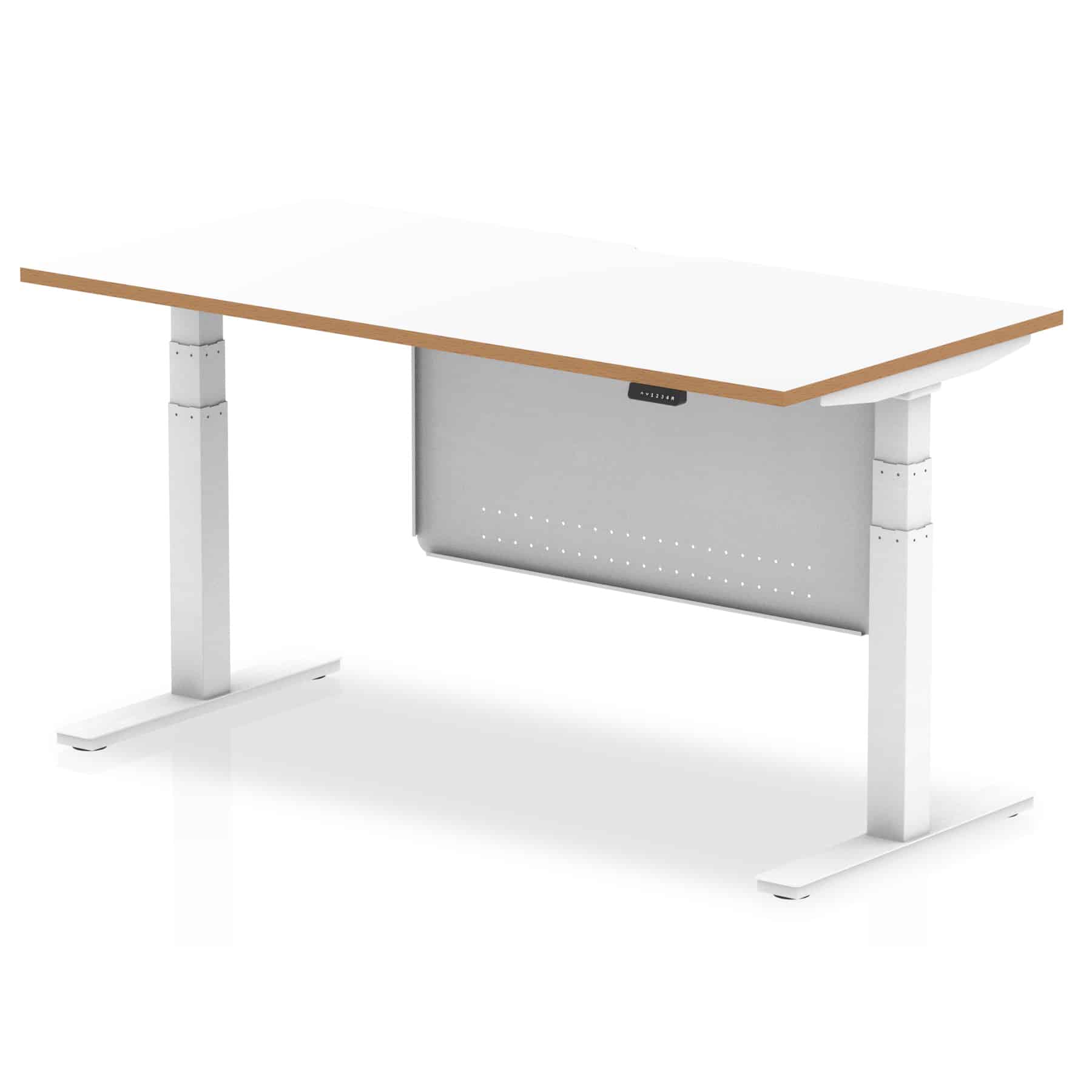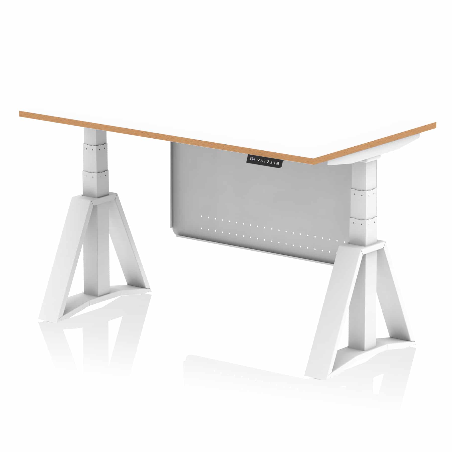 Clean uncluttered lines a minimalist approach to design and high quality robot engineered materials make Oslo office furniture the 21st Century solution to team working in the modern office. The bench style concept saves budget and space.nn• Smooth powerful electronic dual motors • 4 programmable optional memory height settings • Large 660-1310mm height range • Premium 120kg weight capacity • Anti-trap safety stop feature • Digital LED display • Bench desk for minimalist look • Floating fixed desk top • Scalloped back edge for easy cable dumping • 2mm protective ABS edge • 25mm thick tops • Sleek steel modesty panel helps to maintain privacy