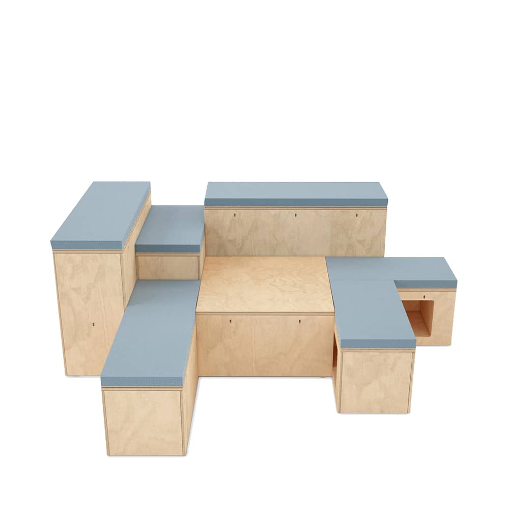 The Platforms Additions range is a collection of interchangeable modules to create shared places within open-plan spaces. Build multiply or subtract as the space demands. Lightweight and agile, the modules can be easily reconfigured and remodelled to adapt to the requirements of the space. Fully adaptable to the user’s interpretations, Platforms Additions can be used to create spaces for group collaboration, solo working and everything in between.
