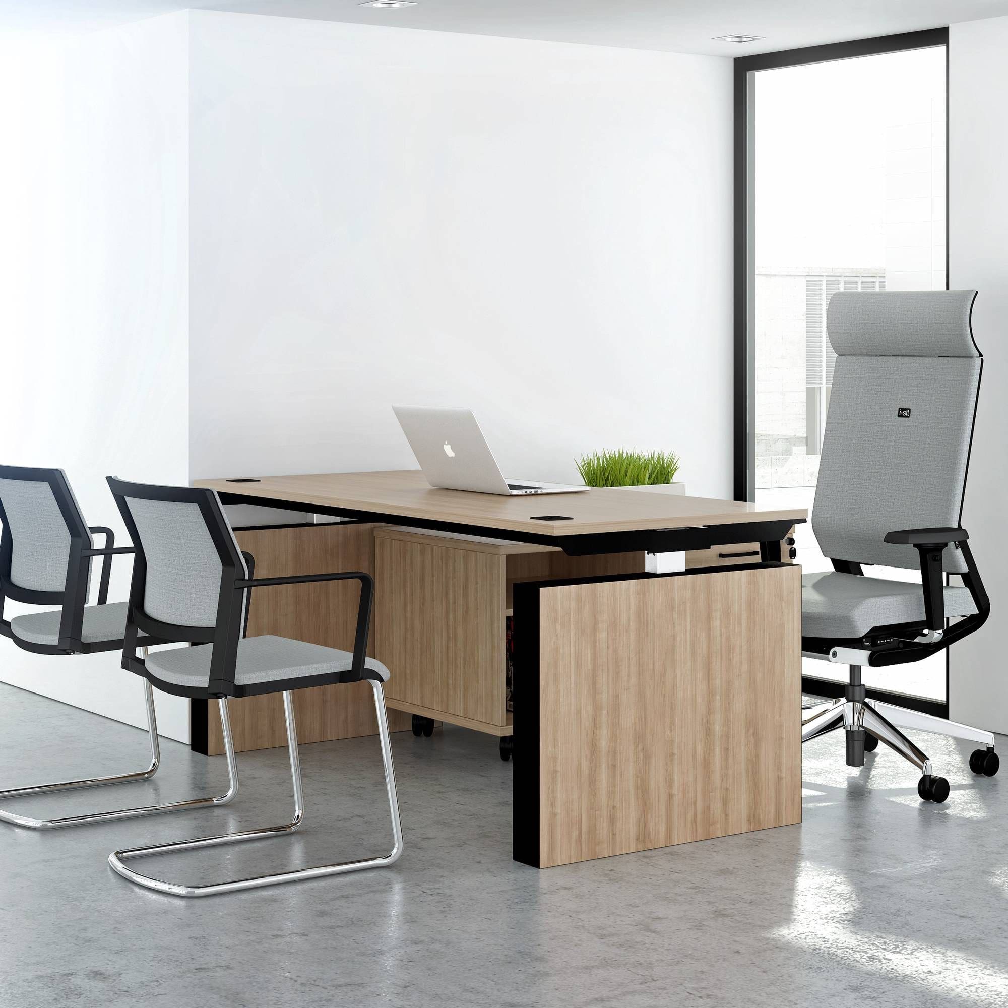 Progress offers complete flexibility with options including fixed height and gas strut height adjustment. Each option can be fitted after the initial installation, should the user’s requirements change. For example, a fixed height workstation can be converted to include height adjustment by swapping the leg uprights only. All components are fully interchangeable for maximum flexibility. The sit-stand aspect brings significant health benefits encouraging wellbeing within the office environment. Height adjustable workstations offer height variation from 685mm to 1185mm. Double benches are supplied with sliding tops as standard, enhancing the flexibility of the desking system. Horizontal wire management is inclusive under each desk top on both the single and double benches. Decorative slab end panels can be fitted to both single and double workstations to enhance the aesthetics at the end of a run of workstations, offering a more executive appearance.