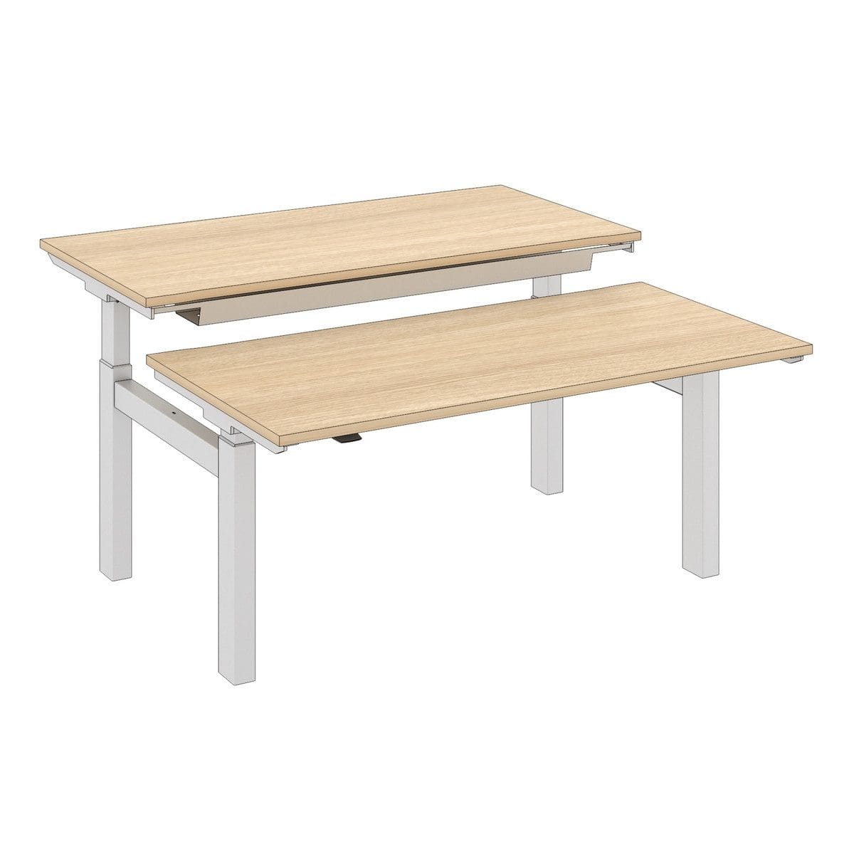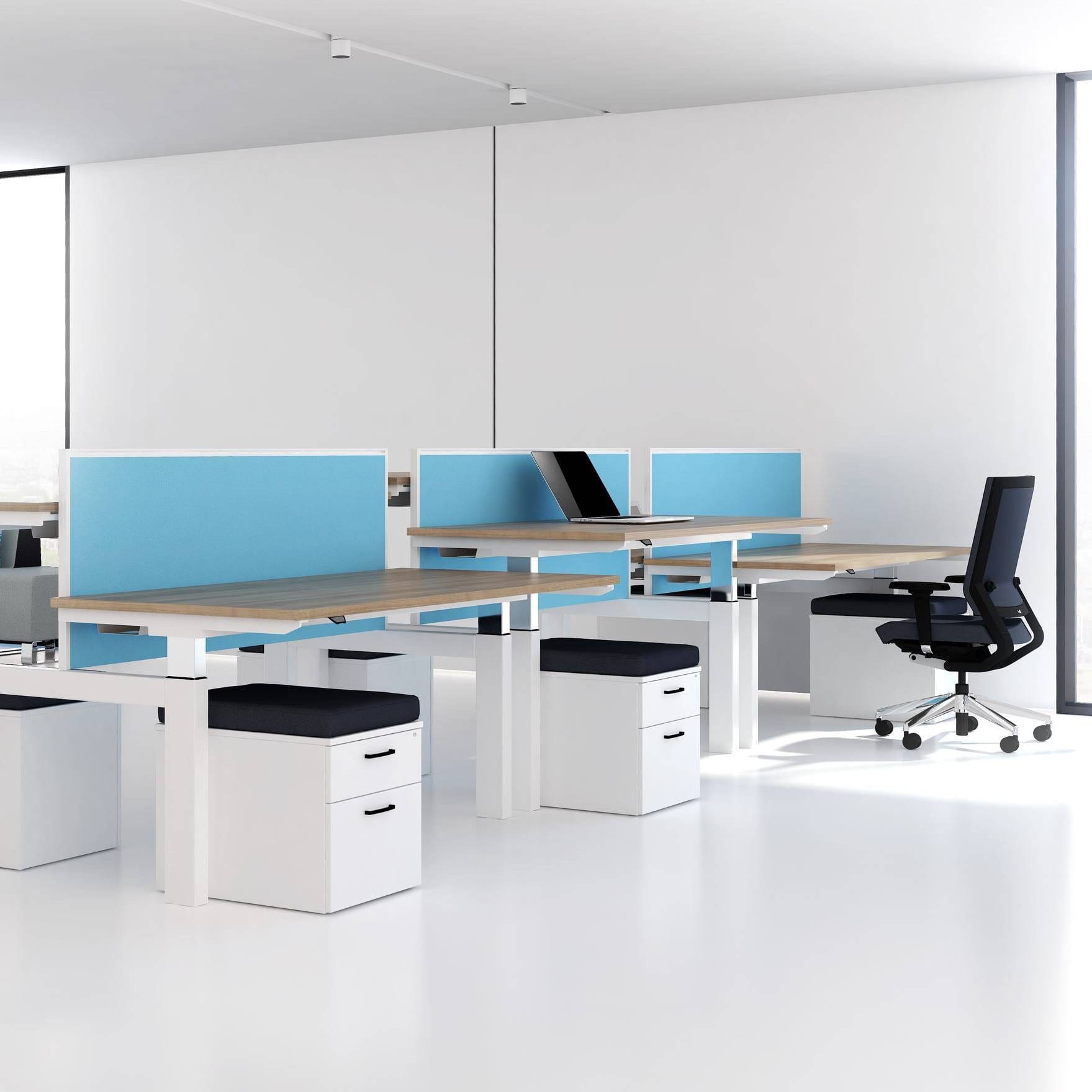 Progress offers complete flexibility with options including fixed height and gas strut height adjustment. Each option can be fitted after the initial installation, should the user’s requirements change. For example, a fixed height workstation can be converted to include height adjustment by swapping the leg uprights only. All components are fully interchangeable for maximum flexibility. The sit-stand aspect brings significant health benefits encouraging wellbeing within the office environment. Height adjustable workstations offer height variation from 685mm to 1185mm. Double benches are supplied with sliding tops as standard, enhancing the flexibility of the desking system. Horizontal wire management is inclusive under each desk top on both the single and double benches. Decorative slab end panels can be fitted to both single and double workstations to enhance the aesthetics at the end of a run of workstations, offering a more executive appearance.