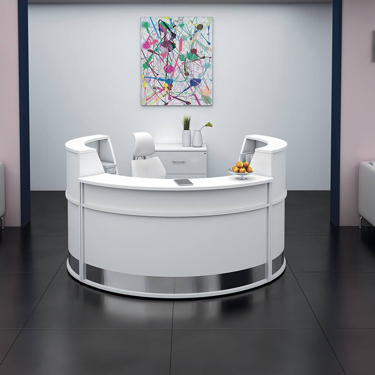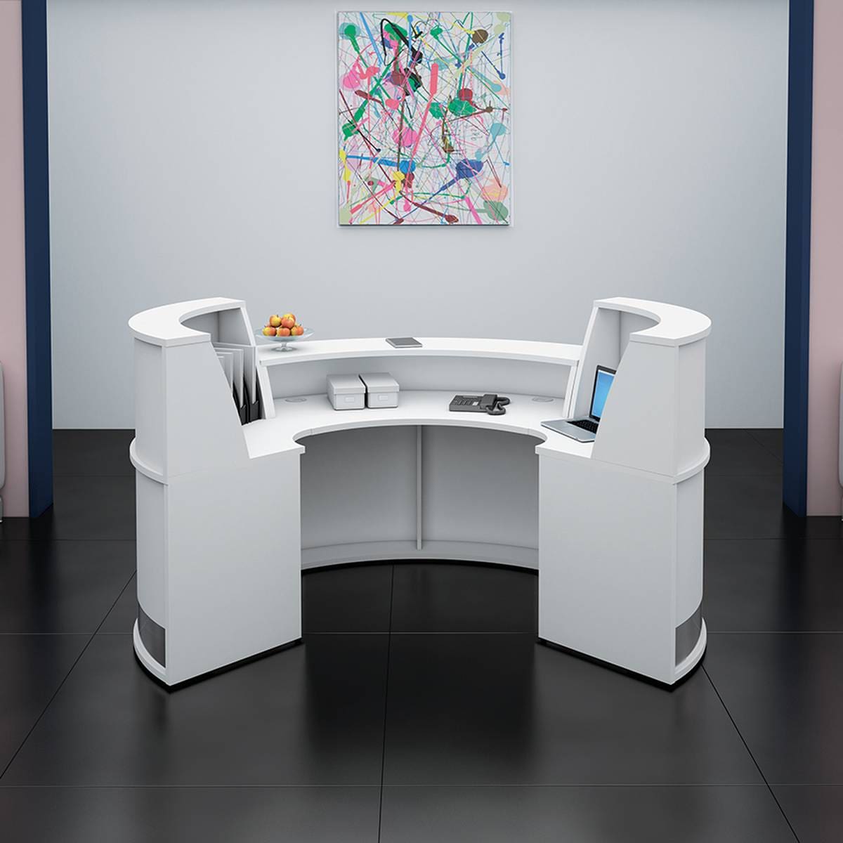 Receptiv is the most comprehensive modular reception range on the market. With numerous base units in various shapes and sizes, Receptiv can be planned in endless configurations to best fit your reception space. Choose between high and low top units or MFC and glass shelves to add privacy or a signing in area to your reception. Available in our choice of 17 board colours, as well as an extra 3 modesty panel finishes or a silver kick plate. Receptiv also provides specifically designed storage units that can be added for further practicality.