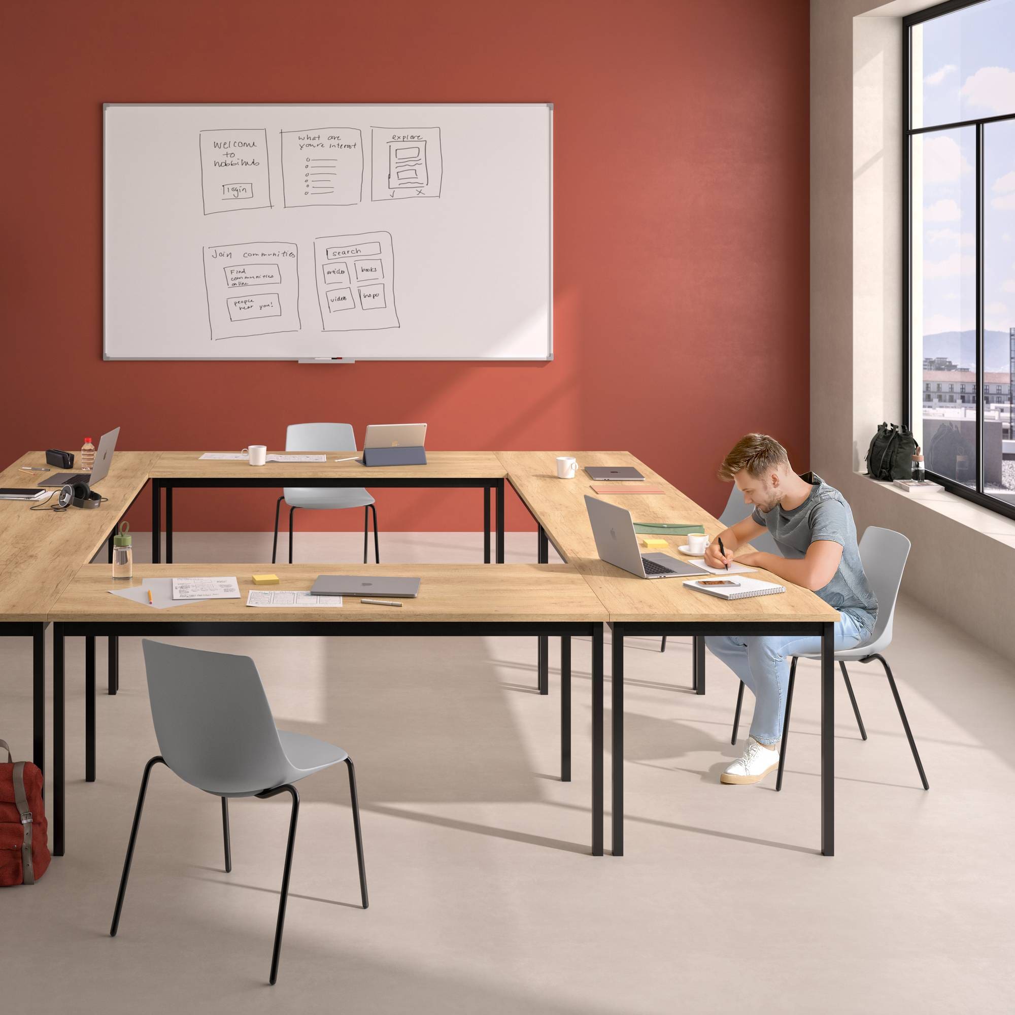 With their modular shape, the Rencontre multipurpose tables allow numerous layout combinations for your meeting rooms or work spaces. Easy to set up, the Rencontre tables can be used to create permanent or occasional meeting or work spaces at low cost.