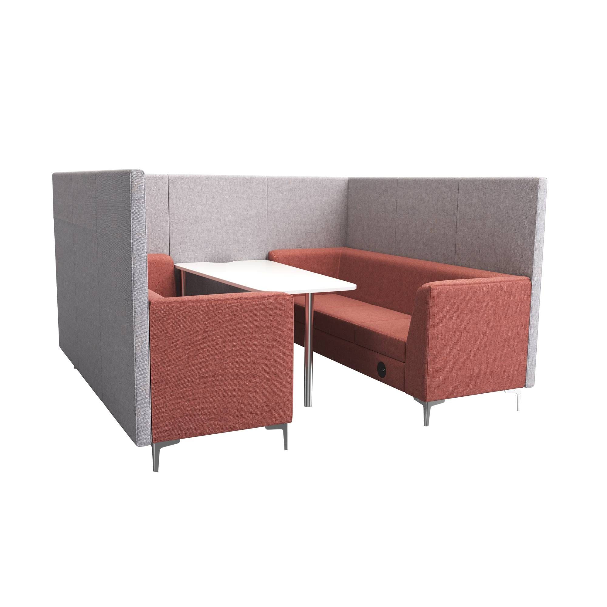The Simoom Booths collection features pre-configured booths that include seating, tables, and joining screens, designed for a variety of workspace needs. These booths provide a practical solution for creating stand-alone informal office or meeting areas for 2, 4, or 6 people. With integrated cable management and power point options, Simoom Booths combine functionality and comfort, making them perfect for collaborative and private workspaces alike. Choose from a range of finishes, including black, white, or chrome legs, to seamlessly integrate Simoom Booths into your office environment.