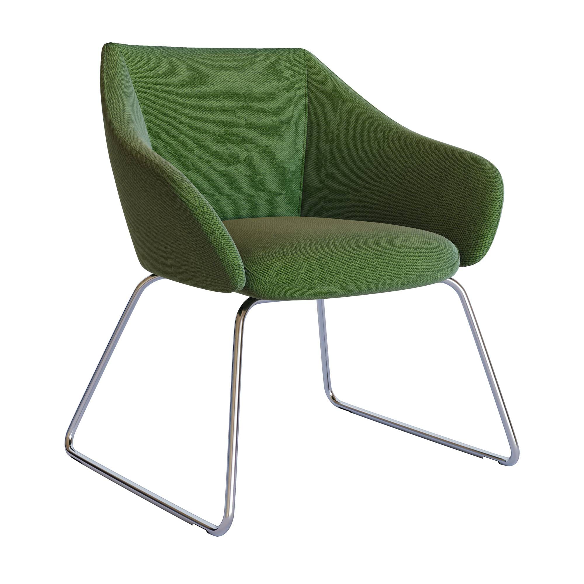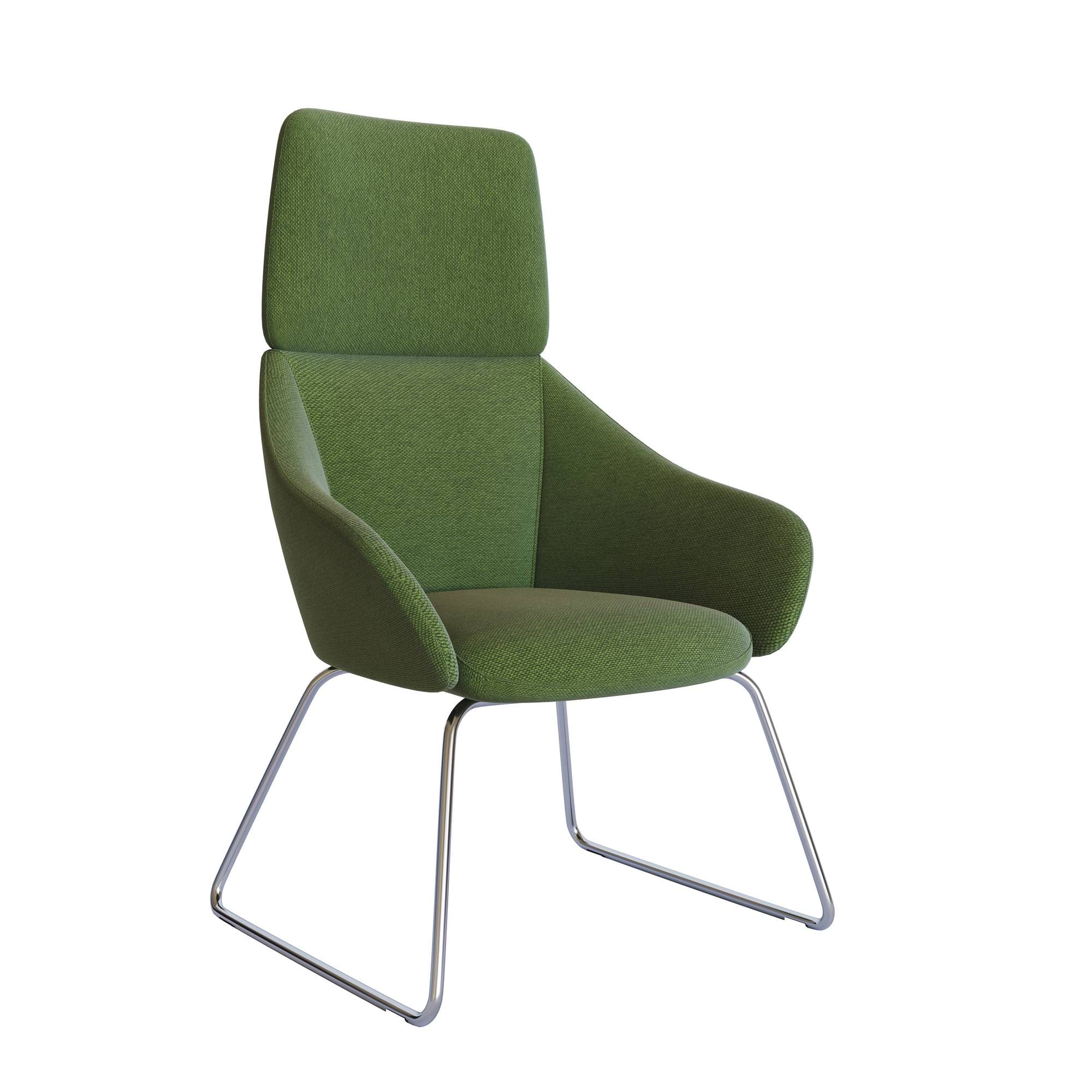 Sooty combines elegance and style to provide an extremely comfortable lounge chair. High and low back versions made with a moulded foam structure and a chrome sled base as standard with a black base also available.