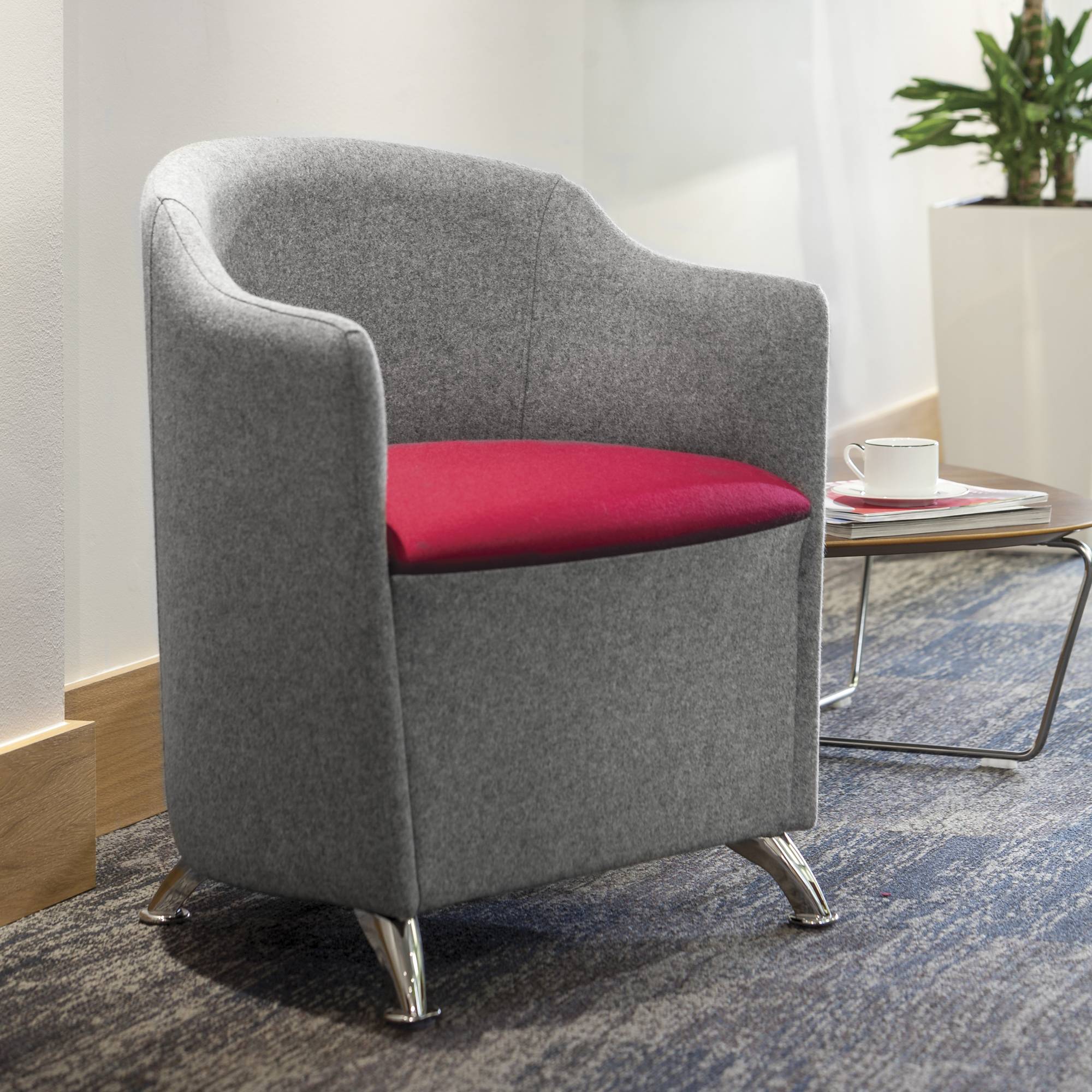 Taku is a fully upholstered, slimline tub chair with a high back and arms – designed to enhance and reception or lounge area.