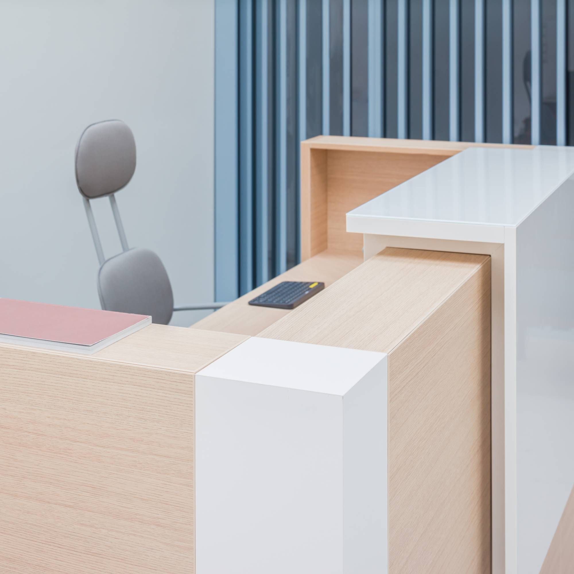 Modular design of the reception desks allows for creating configurations adjusted to the needs of the users and to the space;