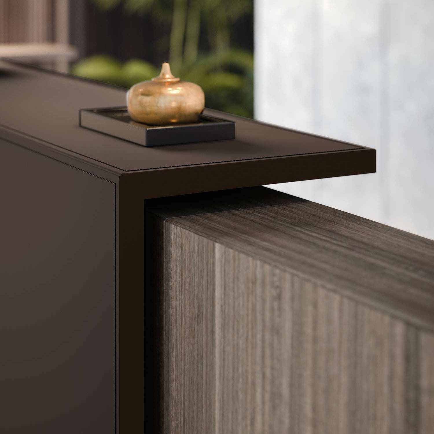 The Z2 Reception features an essential design that guarantees both operational efficiency and a warm reception for visitors. Its modular system enables total customisation: it adapts to available spaces as well as operative and reception requirements, thanks to the meticulous design of vertical and horizontal elements. A high-impact aesthetic effect can be generated by matching different finishings, such as the dual-colour composition, with lacquered, melamine or leather modules, which exalt the reception design and structure as a whole. Led lighting completes the Z2 Reception, highlighting shapes and defining perimeters in an elegant way. Cables and plugs are concealed by practical raceways that guarantee tidiness and cleanliness.